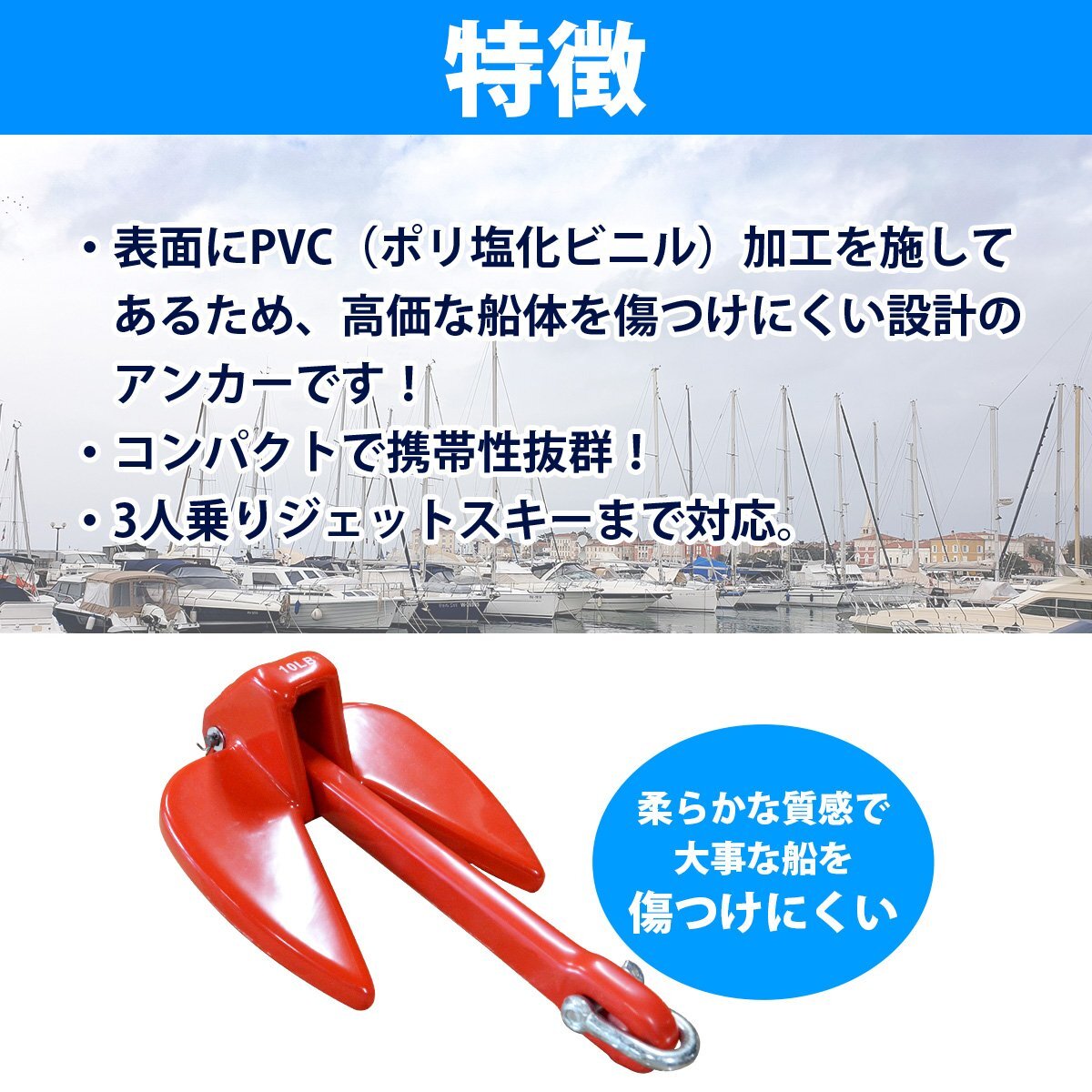 10LB 4.5kg 4.5キロ アンカー 錆に強い PVCコート ジェットスキー ゴムボート 船 赤 レッド アンカー 錘 碇 爪型