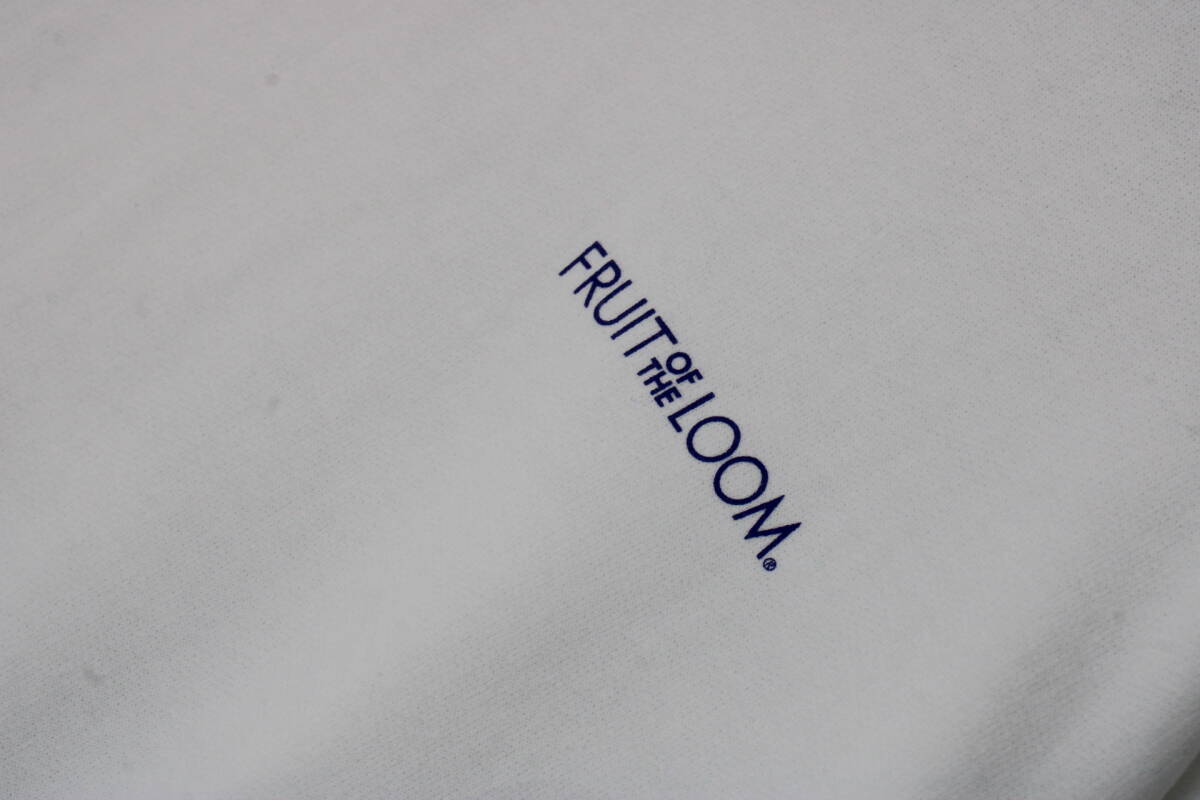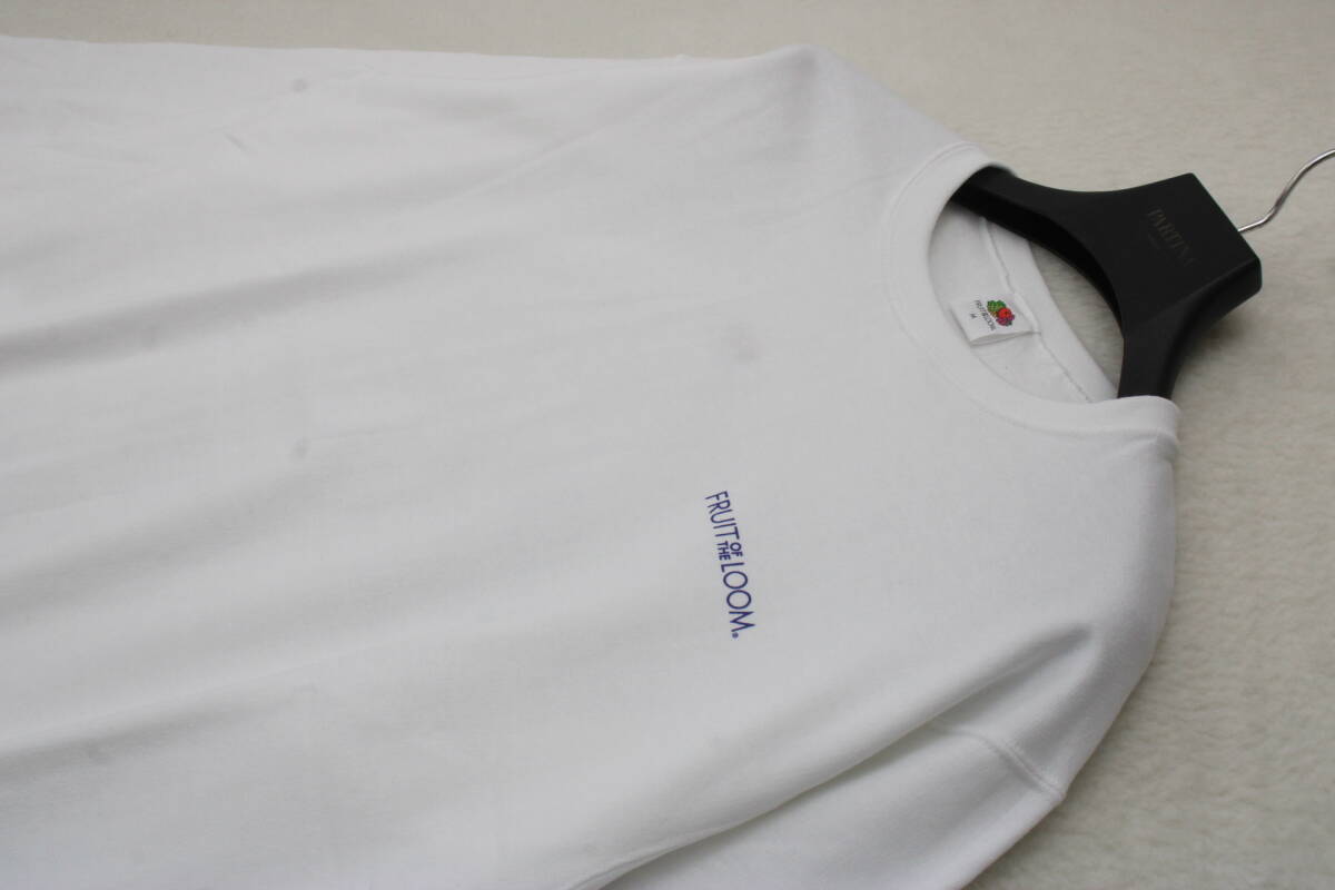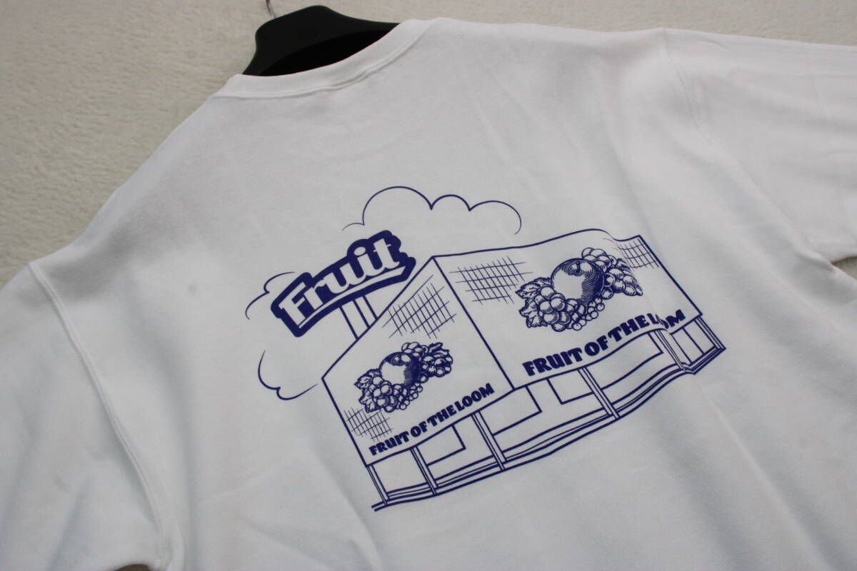 6301 FRUIT OF THE ROOM 新品タグ付き メンズ 裏起毛ロゴプリントトレーナー ホワイト×パープルLサイズ