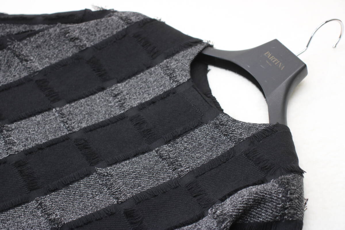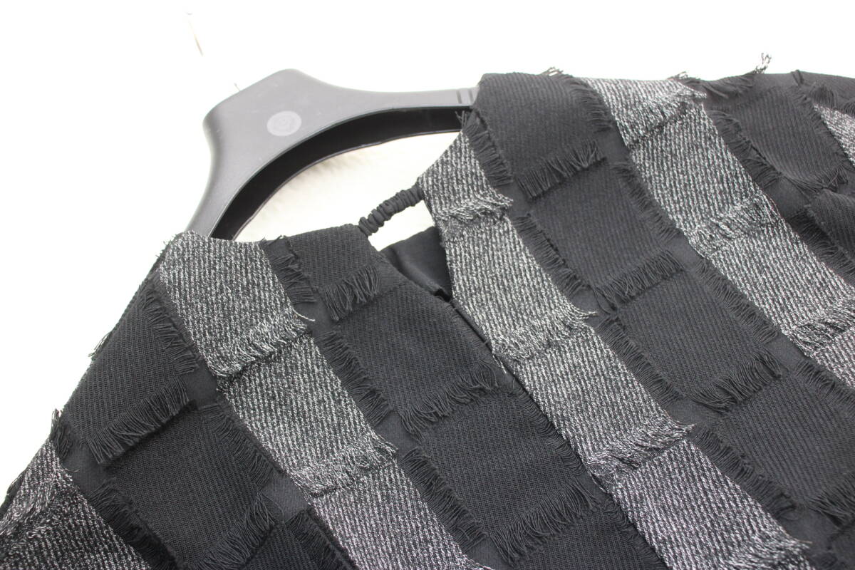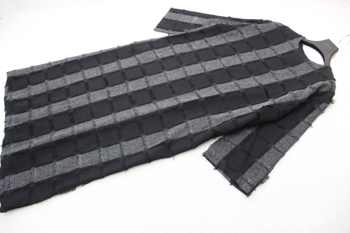 6423 新品 フリンジストライプ柄ワンピース ブラックFサイズ