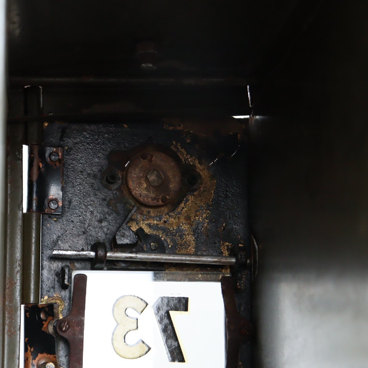 | コンディション condition | 全体的な傾き、キズやサビ、穴あき(写真6枚目)、へこみやゆがみ、色あせ、塗料のハガレ、取れない汚れなど経年による劣化があります。 ※正面からロックを解除できないところがほとんどです。裏からロックの棒をスライドさせて開錠することはできます。 1カ所ロックのピンが変わっているところがあります。(写真10枚目) 詳細は画像をご覧ください。 |