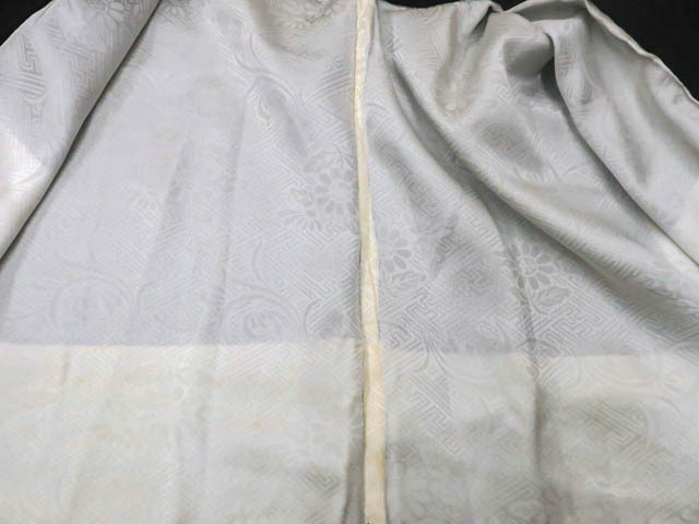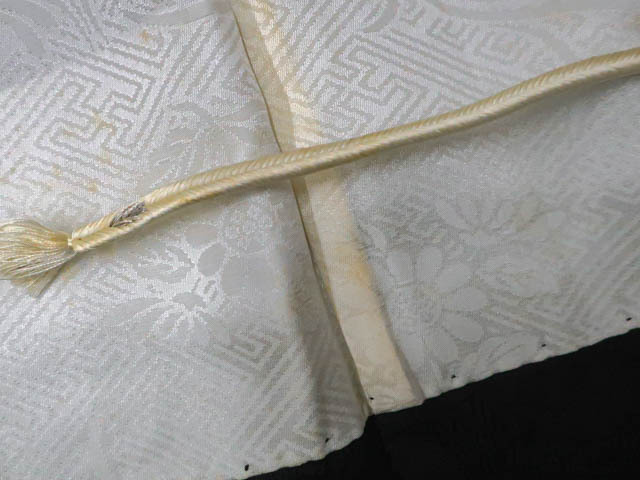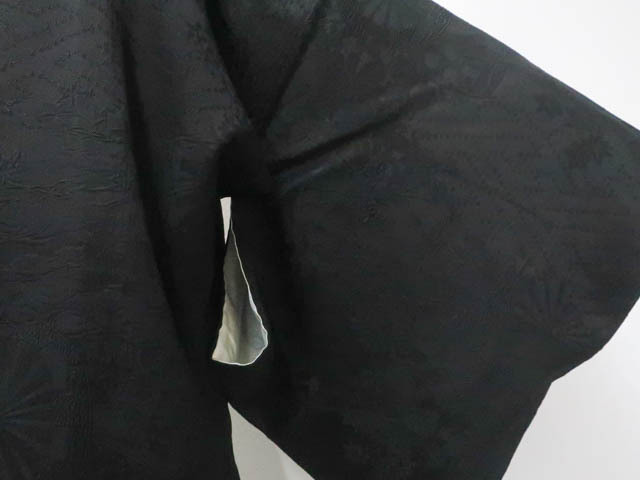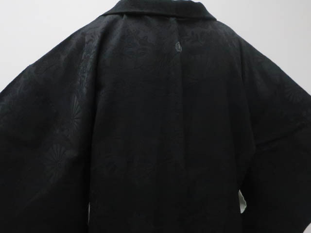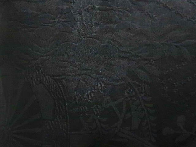 リサイクル商品のため、羽裏にしみと紐に薄汚れがございますが着用可能なお品です。 地色は 黒です。 1枚目の画像が近いお色かと思われます。 素材は正絹です。 |