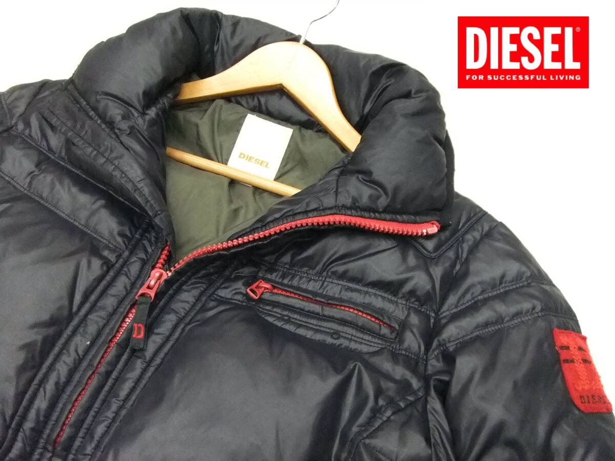 ■DIESEL■ダウンジャケット 黒×赤 Mサイズ エンブレム ディーゼル