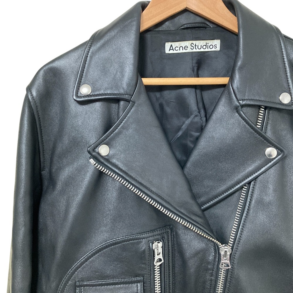 良品 ACNE STUDIOS アクネストゥディオズ LEATHER BIKER JACKET レザー バイカーライダースジャケット 38サイズ ブラック