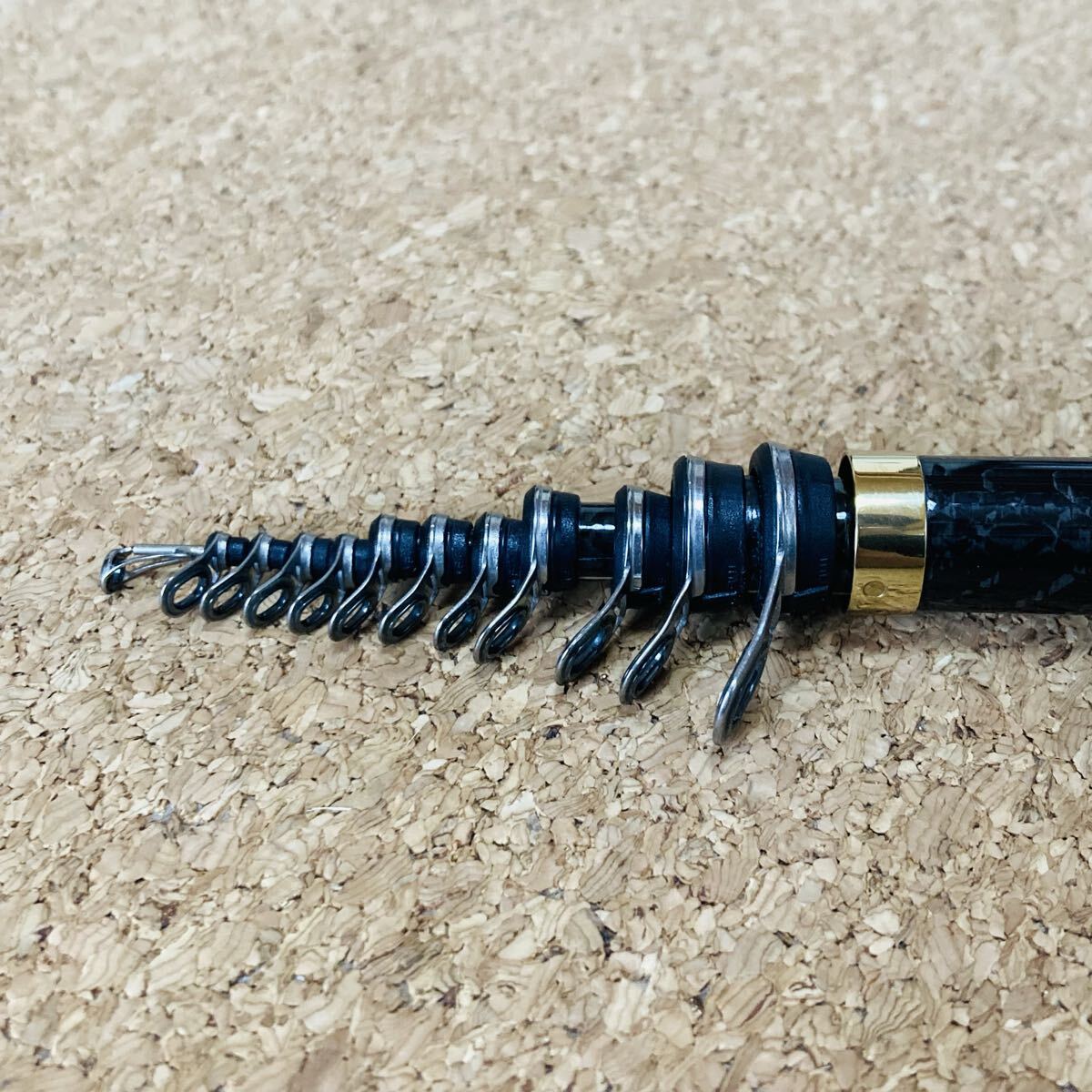 振出部のブランクスにパラパラとコキズや軽い擦れ、トップガイドから2cm下にも擦れがあり表面のクリアコーティングが剥げているようで白くクスんで見えます。