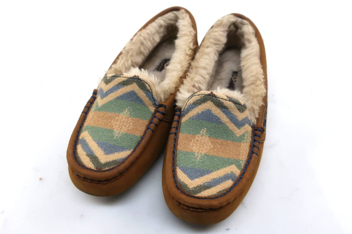 【送900円】2883 UGG×PENDLETON アグ×ペンドルトン モカシンシューズ コラボ 茶×総柄 ムートン スリッポン レディース 24