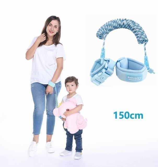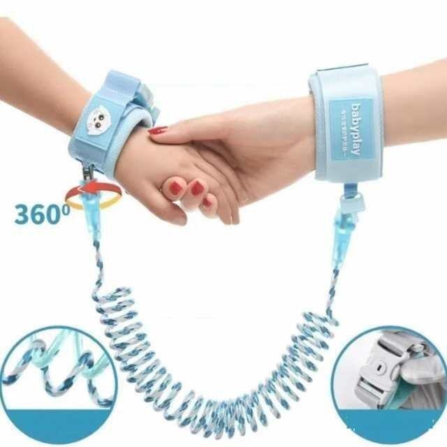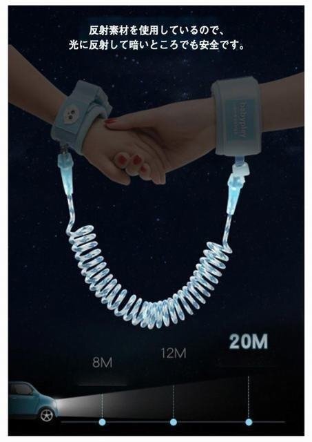 迷子防止ひも リストバンド 長さ調整 150cm 子連れ ハンドベルト 迷子紐 迷子防止リング 迷子対策 ロープ 伸縮 手つなぎ補助帯 ブルー