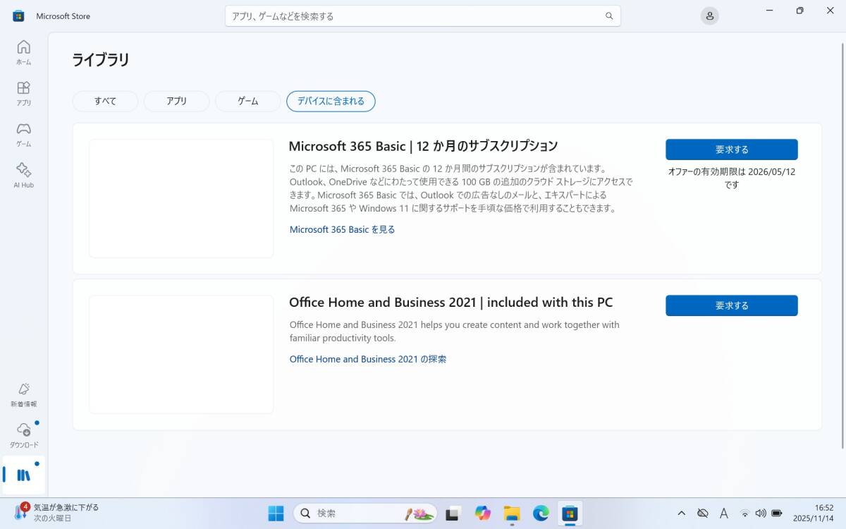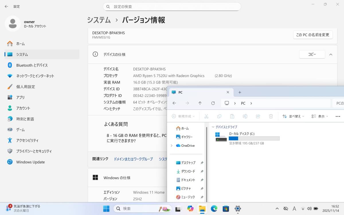 | OS | Windows 11 Home 64ビット版 | ||||||||||||||||||||||||||||||