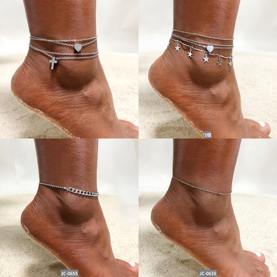 12.3.4 フェード アンクレット ステンレス スター 星 クロス ハート チャーム 足首 チェーン 蛇 スネーク キューバ 足 ジュエリー