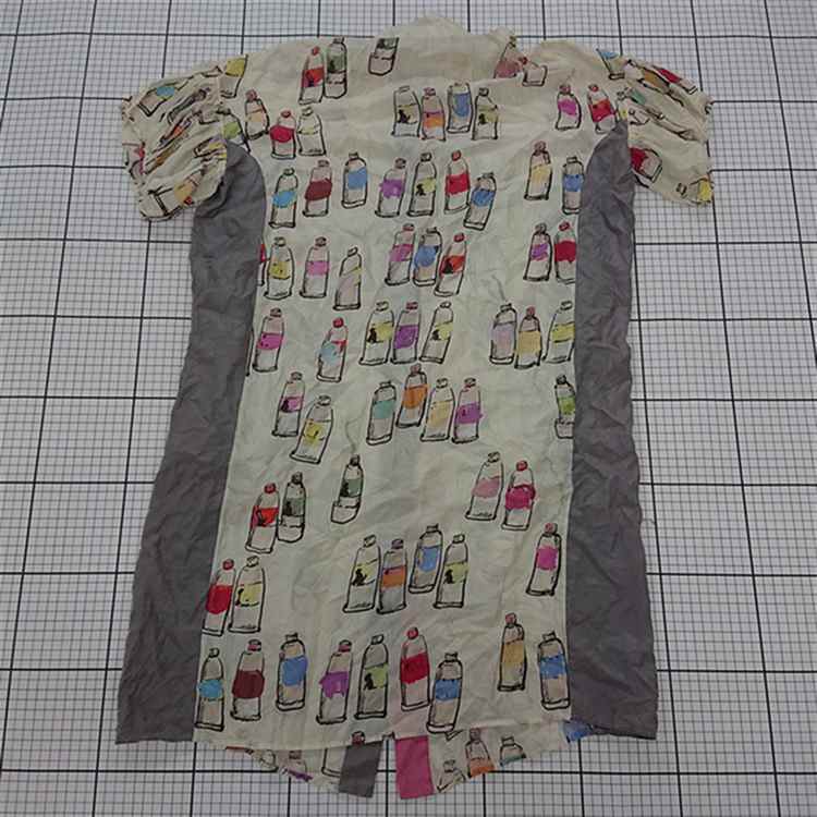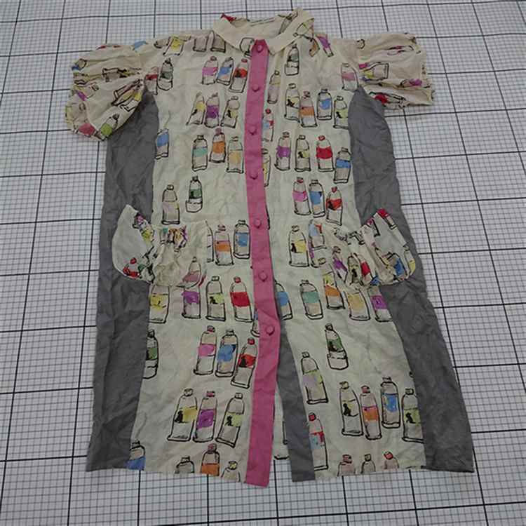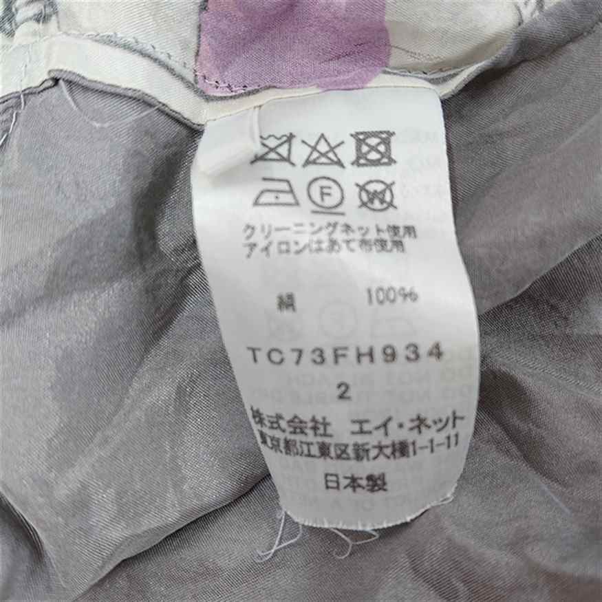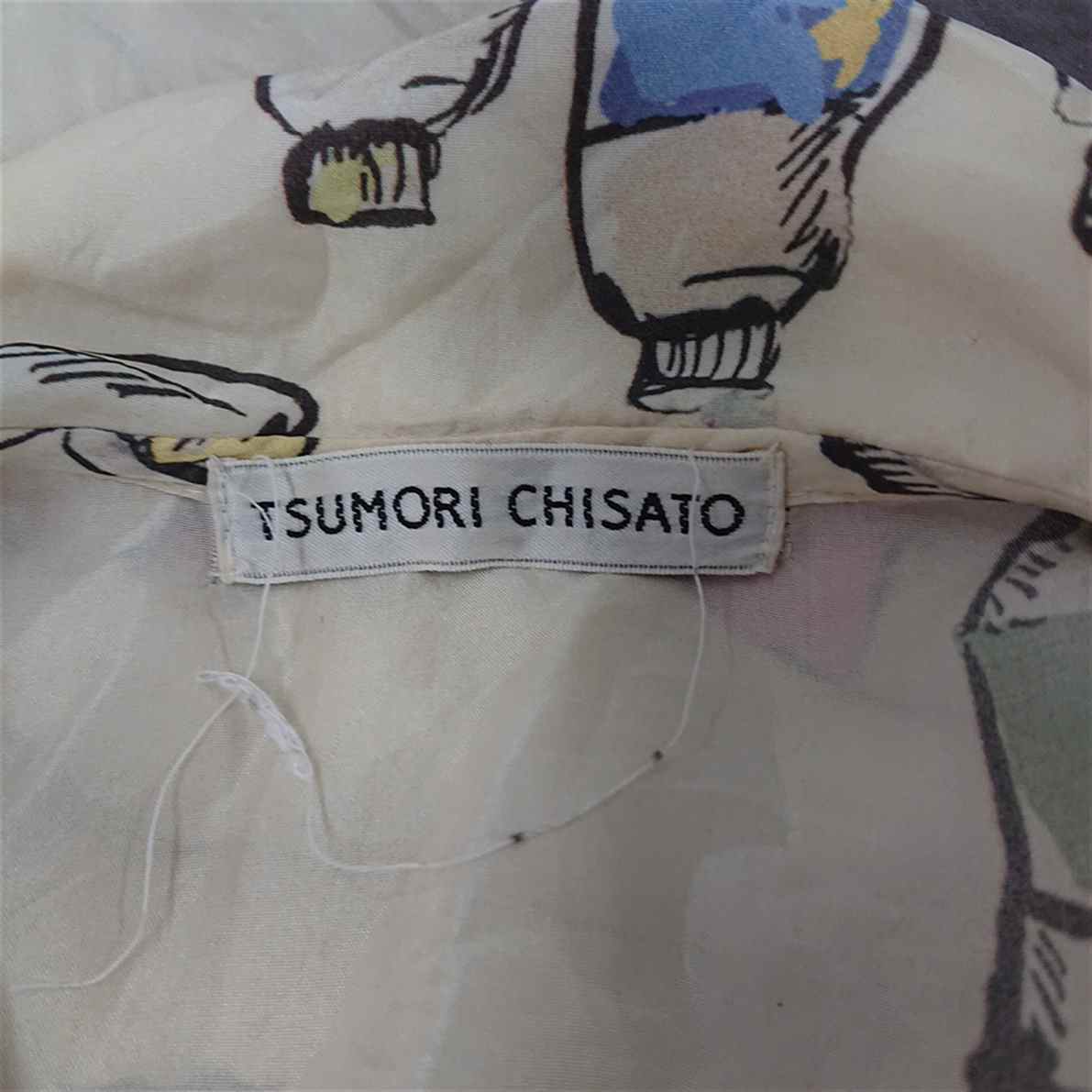 ◇ ⊂ ツモリチサト 絵具柄 シルク 半袖 膝丈 シャツワンピース サイズ2 アイボリー系 マルチ レディース E