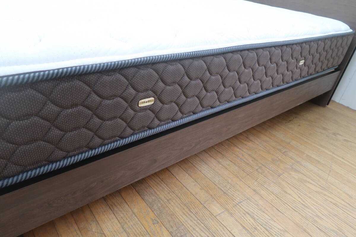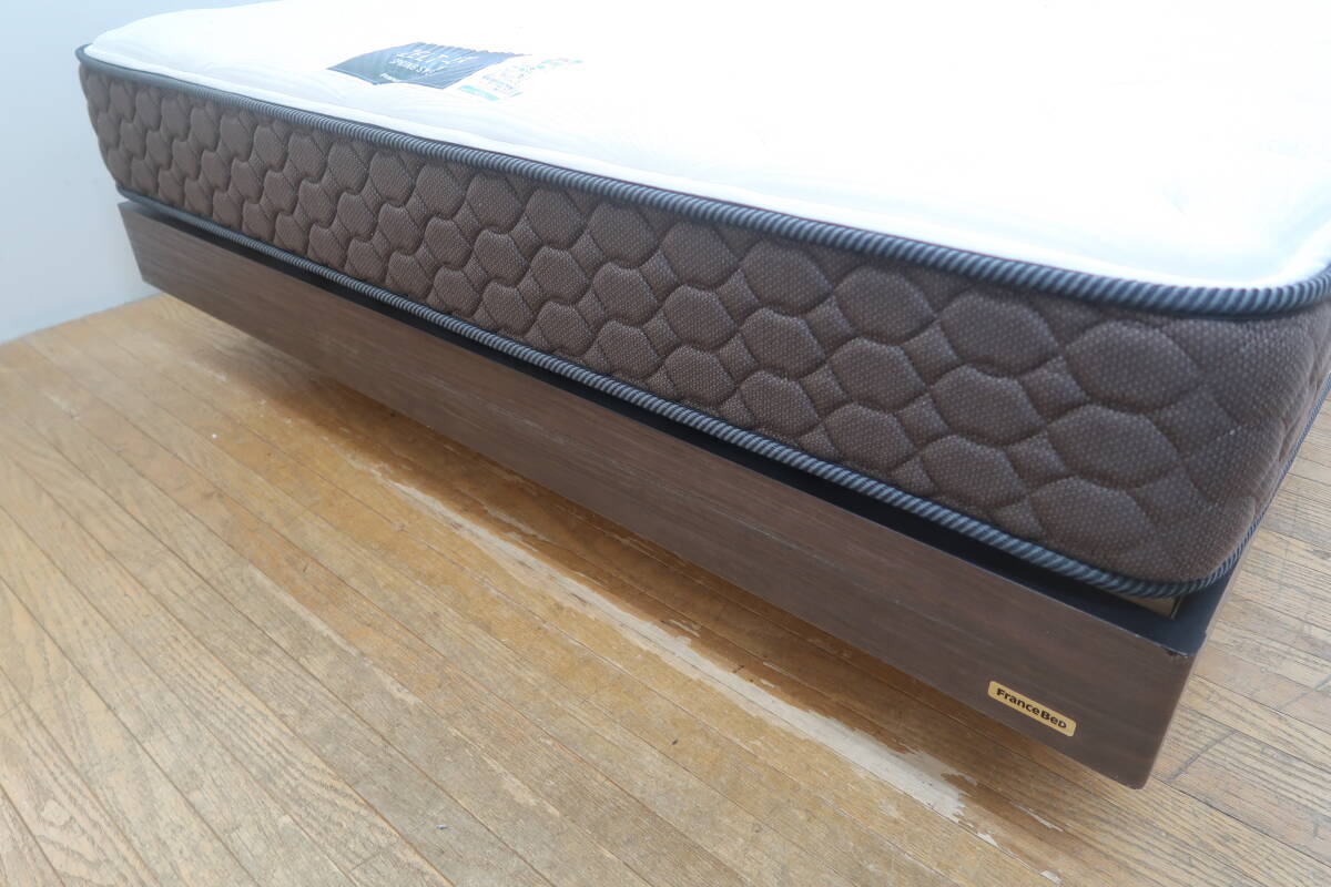 マットレスとフレーム共にフランスベッドの製品になります。フランスベッド社は、1949年の創業を開始してから、日本国内の寝具業界で、 確固たる地位を確立した寝具メーカーとなっております。ゼルトスプリングの前身、Z-HIスプリングはバーナーで焼入れを行っておりました。しかし、Co2削減の関係で焼入れを行わないデュラテクノに進化しました。更に耐久力を上げる為、ゼルトスプリングはスプリングに焼入れを電気で行うDET(ダイレクトエレクトリックトリートメント)方式を採用して焼入れを行っています。このDET方式を採用する事によりCO2の削減と焼入れを両立し高耐久力を実現しています。フレームもモダンなデザインですのでどんなお部屋にも馴染みます。フレームも高級感の漂う、落ち着いたデザインです。どんなお部屋にもしっくりと馴染みます。床板もスノコ仕様ですので湿気を溜めません。
