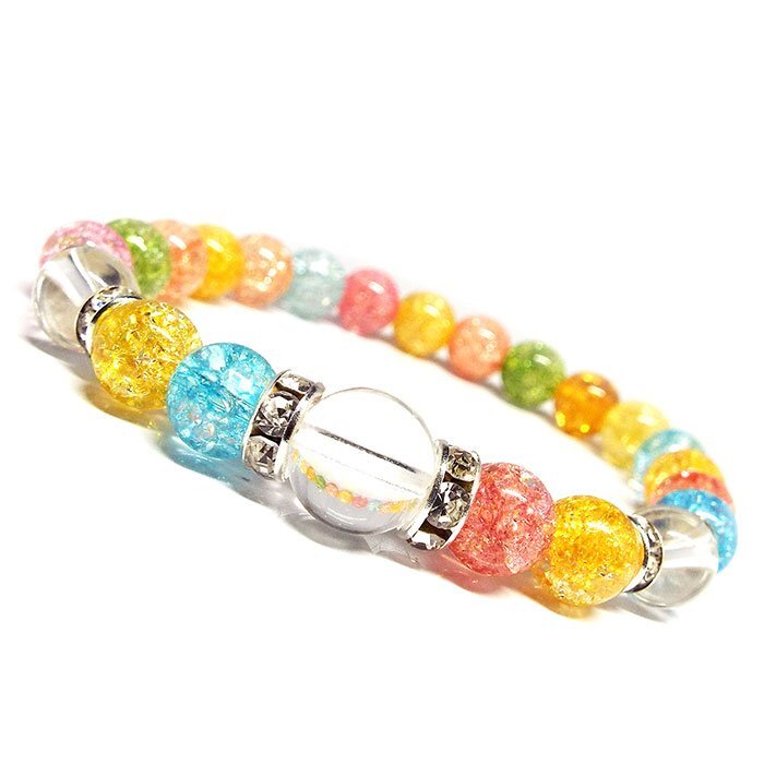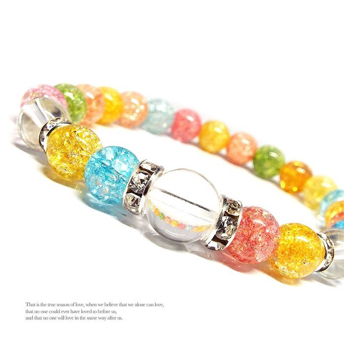 | 【STONE KITCHEN 天然石 パワーストーン】 ☆相思相愛 mutual love パワーストーンブレスレット♪☆ シンプルなデザインだから恋人同士でペア付けなんてのもおススメ!!! 人気No‘1パワーストーンブレスレットだから、街で見かけた素敵な人と偶然おそろいなんて事も!? お気に入りのカラーの石や素敵な由来のある石を選んでお出かけしょう♪ 好きな人と両思いになって お付き合いすることができるのは、とても幸せな経験です。 一度、両思いになることができたのなら その思いがすれ違わないように、またたくさんの努力をしましょう☆ 水晶は、基本となる石で全てのストーンに対して相性がよく また邪気を吸収してしまったストーンを浄化してくれる力があると言われています。 内周:約17cm サイズ:水晶 10mm・8mm 天然石:各種 8mm カラークラック水晶 1点 注意事項 ※金属部分は汗や汚れ等で変色する場合がございます。気になる場合は金属磨きや布等で軽くふき取る事をおすすめします。 ※石の種類によっては、艶を引き出すことを目的として、ワックスや着色加工がされているものもあります。 ※表示のサイズは必ずしも最大値・最小値のサイズのものが入っているわけではございません。 ※天然石のため同じものでも色味・模様などが異なります。 ※照明の具合で実際とは色合いが異なる場合がございます。 また、天然素材特有のクラック・内包物を有する場合がございます。予めご了承下さい。 | |