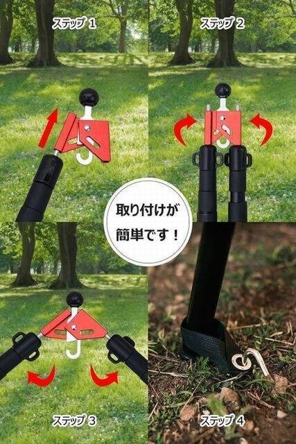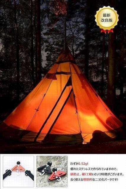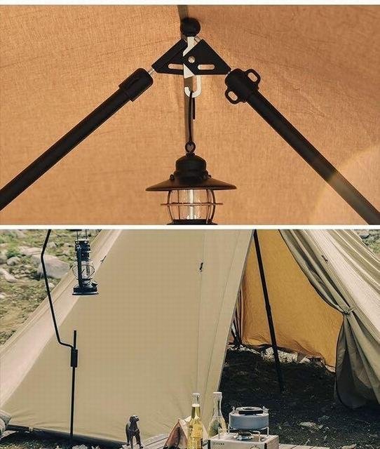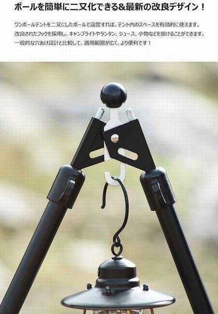 【ポールを簡単に二又化できる&最新の改良デザイン】 ワンポールテントを二又にしたポールで設営すれば、テント内のスペースを有効的に使えます。改良されたフックを採用し、キャンプライトやランタン、ジュース、小物などを掛けることができます。一般的な穴あけ設計と比較して、適用範囲が広く、より便利です。