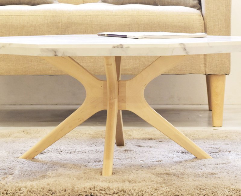 中質繊維板にプリント紙貼り(PU塗装)、バーチの天然木(ラッカー塗装)