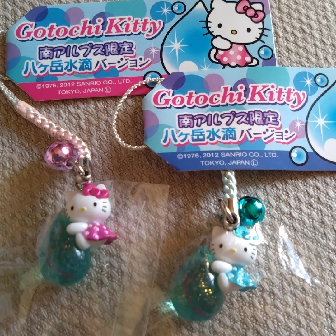 ご当地キティ 2012 南アルプス 八ヶ岳 水滴バージョン ラメ入りクリア雫抱きつきキティちゃん 根付け ストラップ ピンクキティちゃん ブルーキティちゃん全2色セット