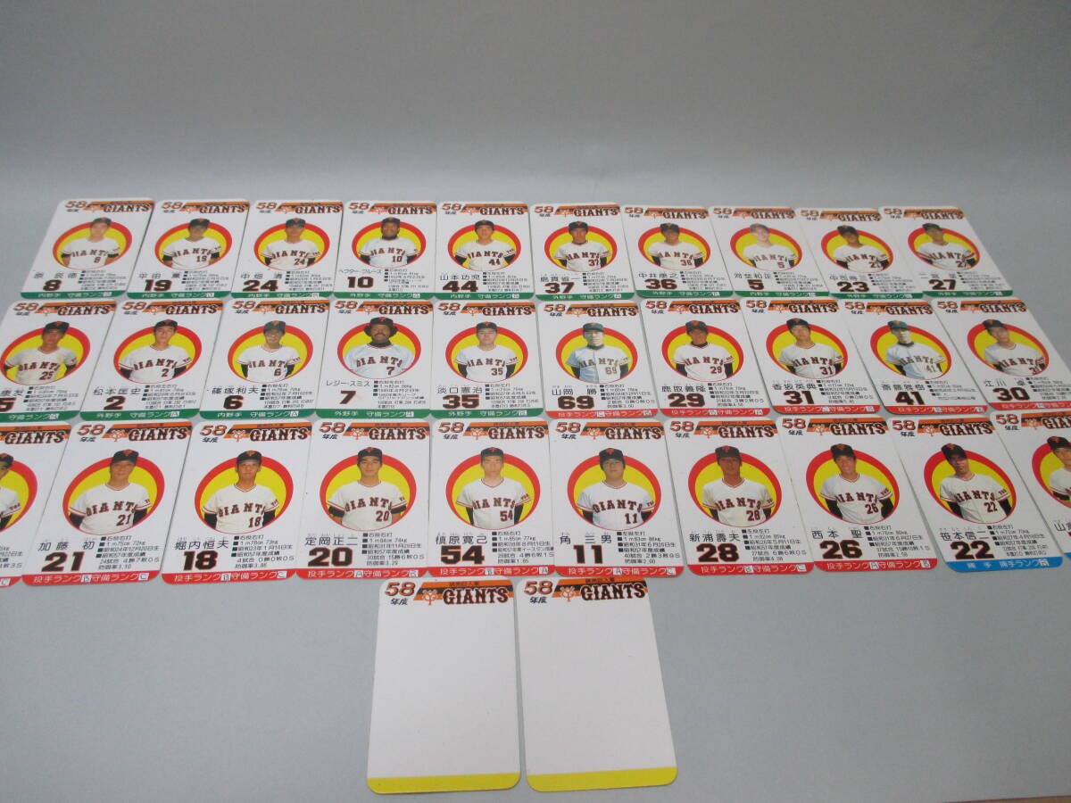 タカラ/58年度版 プロ野球ゲーム 球団別選手カード 読売ジャイアンツ 巨人