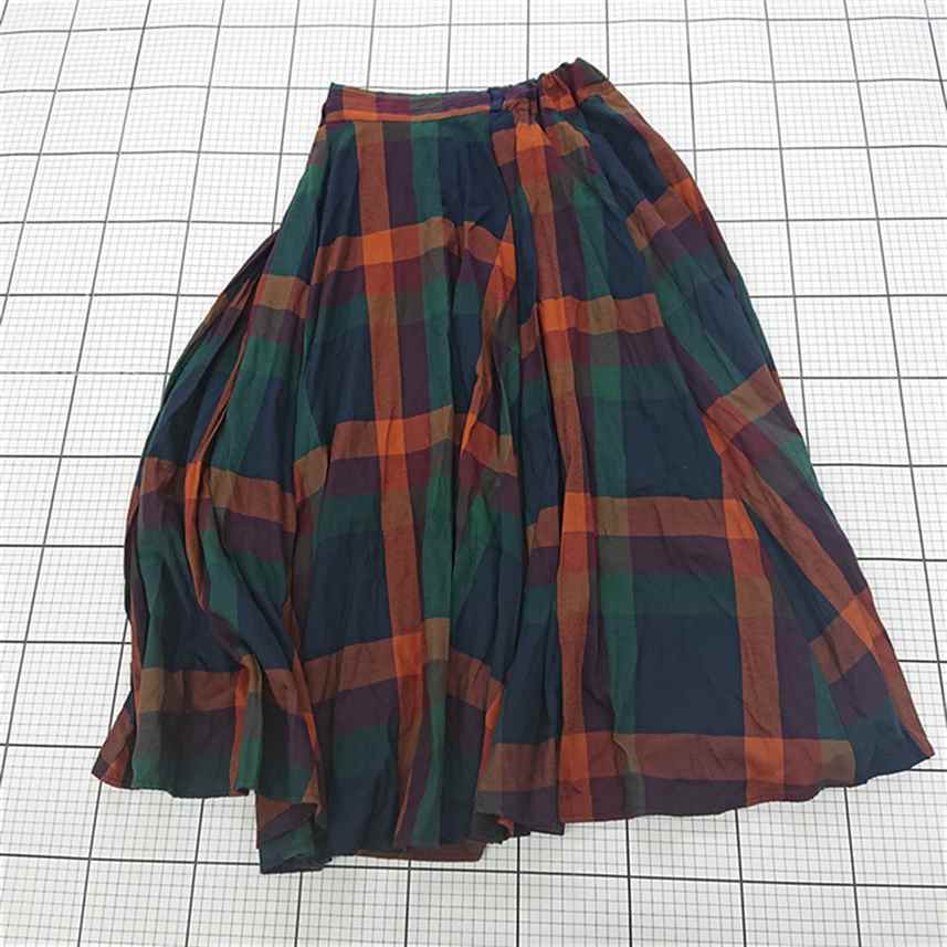 ◇ Θ AS KNOW AS PLUS アズノゥアズプラス チェック ロング フレア スカート サイズF グリーン系 マルチ レディース E