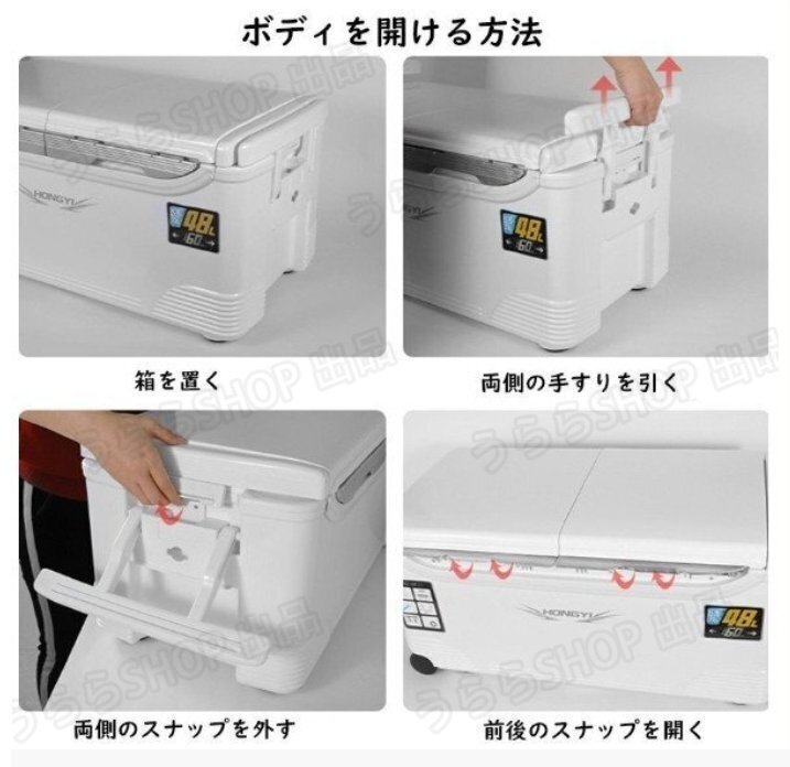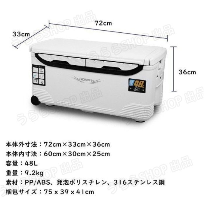 釣り用クーラーボックス 大容量 大型48L 座れる頑丈マッスルボディ 防水 サイドハンドル キャスター付 釣り 保冷力150h 水栓付き xhw0125