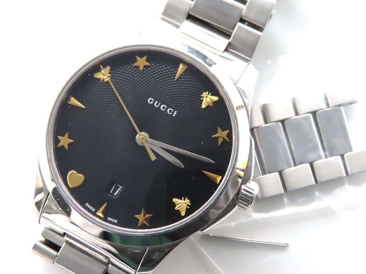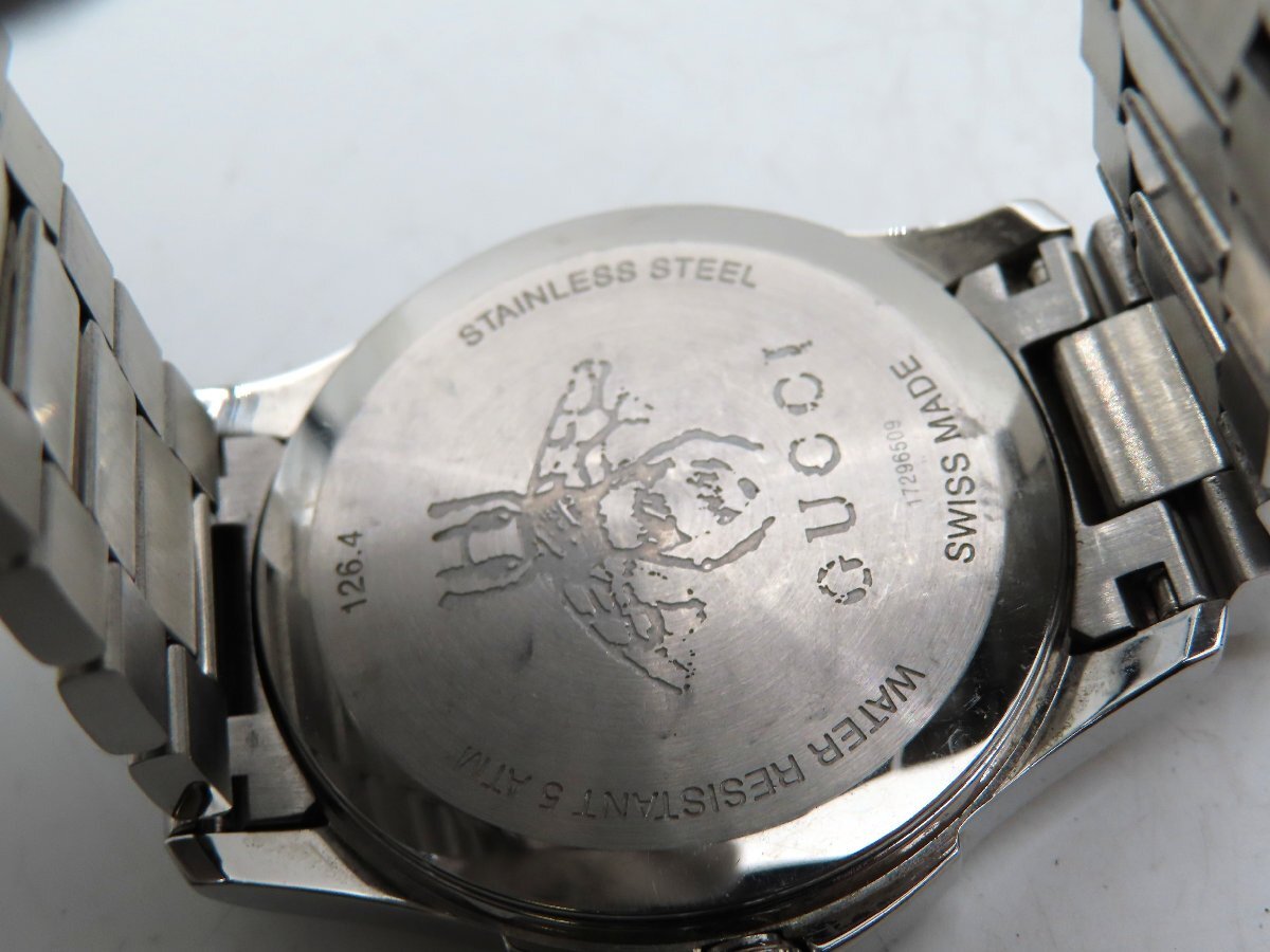 1円 グッチ 126.4 Gタイムス SS ブラック文字盤 メンズ 稼働 QZ コマ 28626 NERN