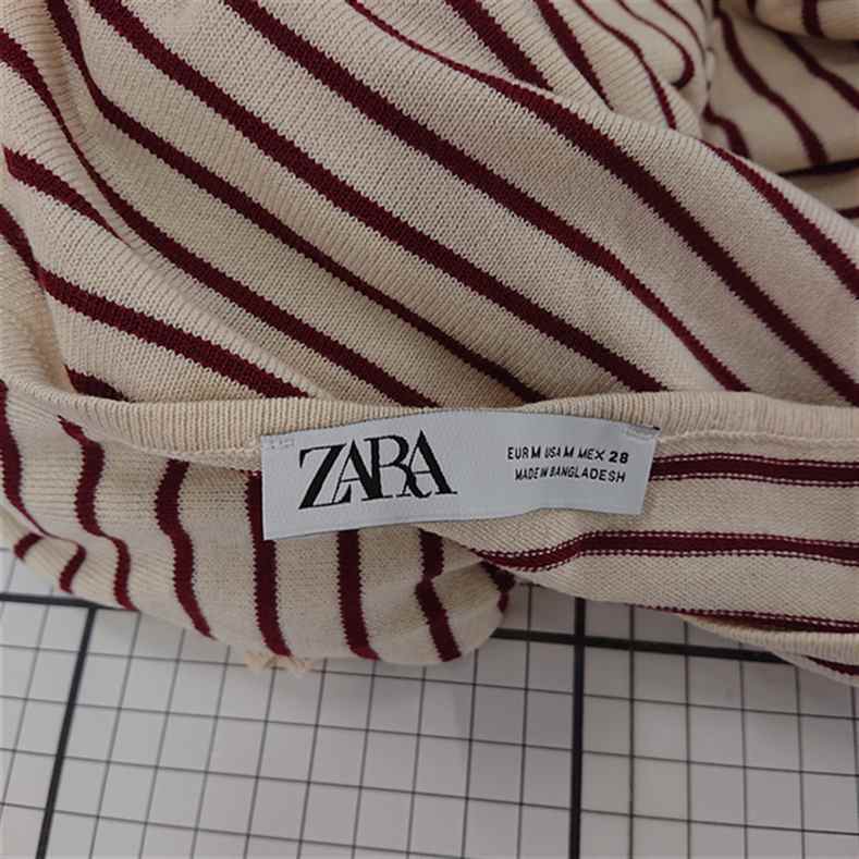◇ Θ 【ザラ ZARA】ボーダー柄 長袖 ニットカットソー ベージュ系 Mサイズ レディース E