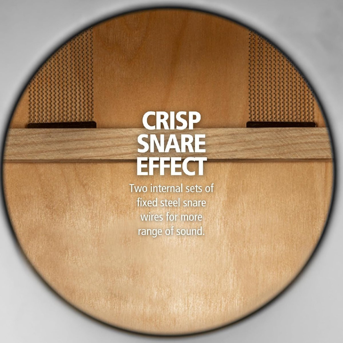 ボディにはソリッドで音の輪郭がくっきりとし、湿度環境への耐性も強いMDF材を使用した、リーズナブルながら心地よいベースサウンドと、打面裏にはカットされた2本のスネアワイヤーが仕込まれており、スラップサウンドとのバランスが取れた、スネアカホンです。