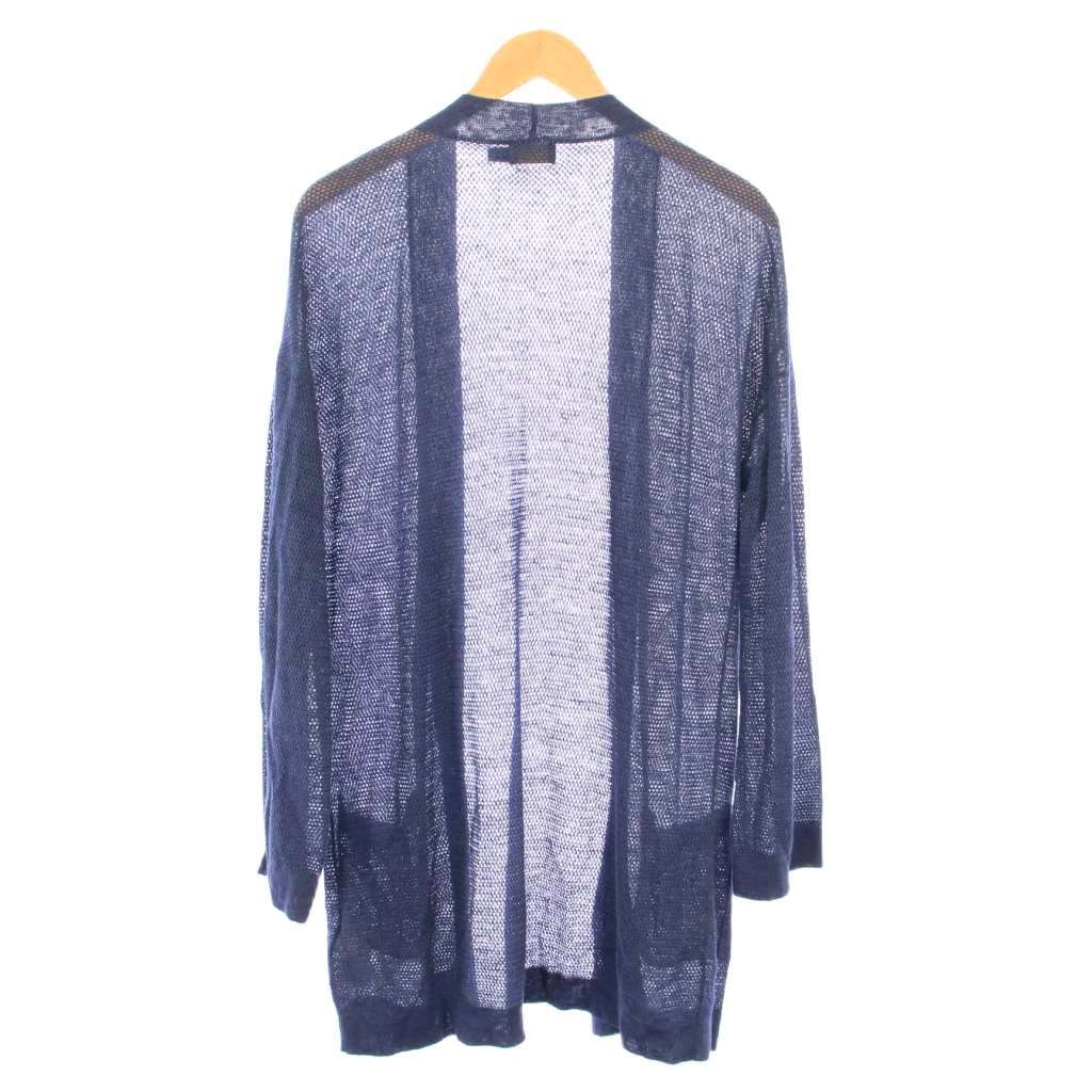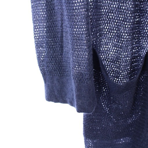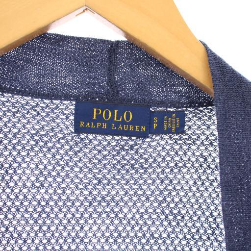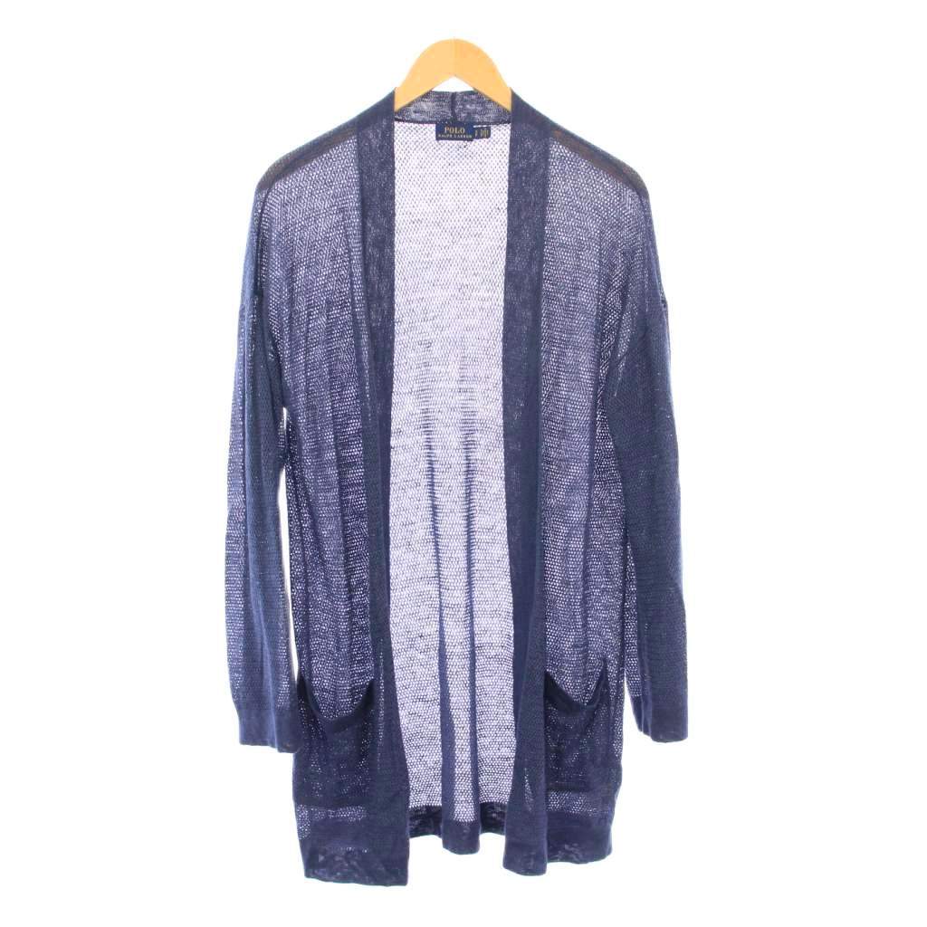 ポロ ラルフローレン POLO RALPH LAUREN ニットカーディガン 長袖 ロング丈 前開きトッパー 編み込み 麻 リネン S 紺 ネイビー