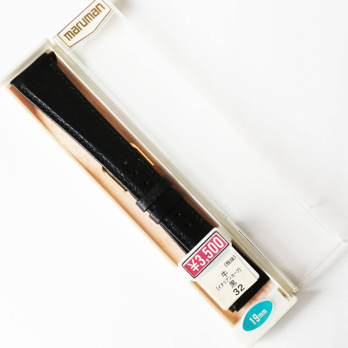 * マルマン maruman 時計ベルト 19mm バネ棒つき 牛 イタリアンカーフ 黒