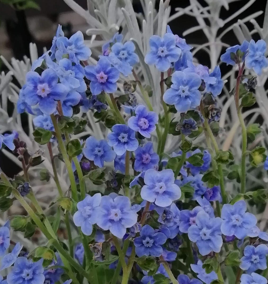 透明感のある澄んだ青色の花を咲かせるシノグロッサム。耐寒性のある1年草の草花です。