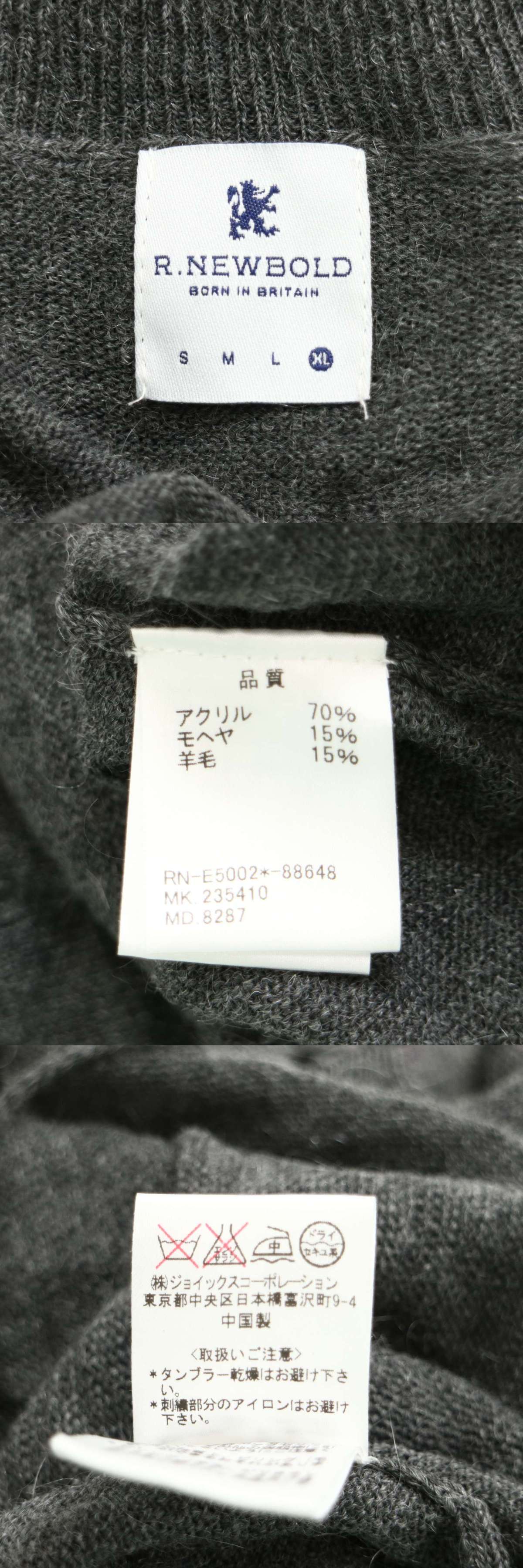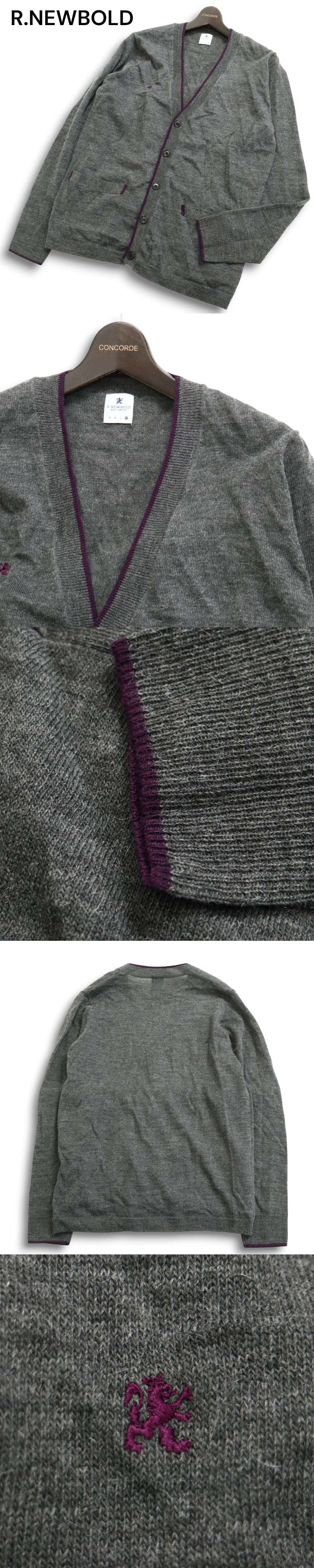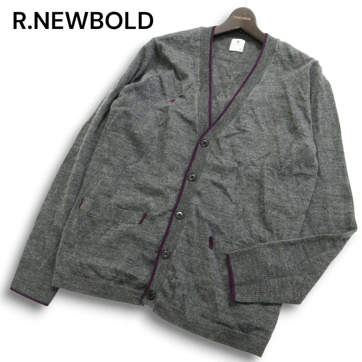 R.NEWBOLD ポールスミス 秋冬 モヘヤ&ウール混★ ロゴ刺繍 ニット カーディガン Sz.XL メンズ グレー