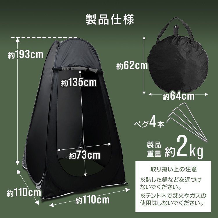 | 海水浴やアウトドアでの着替えに! 女性やお子様でも1人で簡単に設営できる どこでも着替えが出来る着替え用のテントです。 足元のひもを踏んで横倒れ防止できます! キャンプや海や川などに行ったときに、車内での着替えは狭くて辛い! でもこのテントがあればどこでも着替えができるので便利です♪ 中はゆったり広々で大人でも楽に着替えができます! 災害時には中に簡易トイレなどに設置としてトイレとして使うこともできます! アイデア次第で使い方が広がる簡単テントです! 【商品仕様】 カラー:グリーン サイズ: ・使用時(約):幅110×奥行110×高さ193cm ・収納時(約):幅64cm×奥行62cm×厚さ7cm 材質:ポリエステル 他 重量(約):2kg 【商品内容】 テント本体 ×1 ペグ ×4 キャリーバッグ (テント ワンタッチ UV ワンタッチテント ポップアップテント ビーチテント 日よけテント 簡易テント フルクローズサンシェードテント サンシェード 日よけ ビーチ 海 BBQ バーベキュー キャンプ アウトドア ピクニック 防災 災害 避難) |