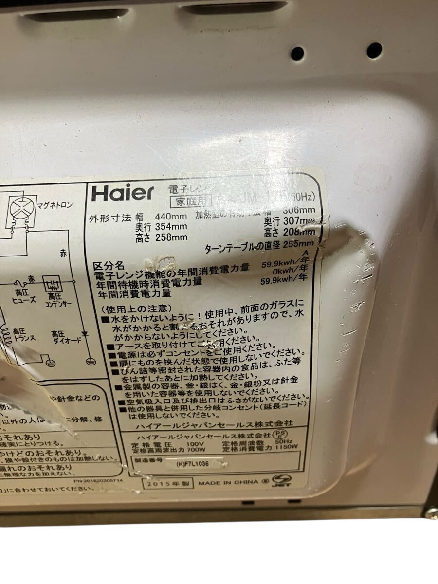 ハイアール Haier 電子レンジ JM-17E 15年製 50Hz 保証付き 東日本専用