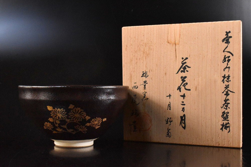 | 商品名 | 【雲】某コレクター買取品 瀬戸 黒釉花絵付天目茶碗 在銘 共箱 古美術品(茶道具) K5506 |