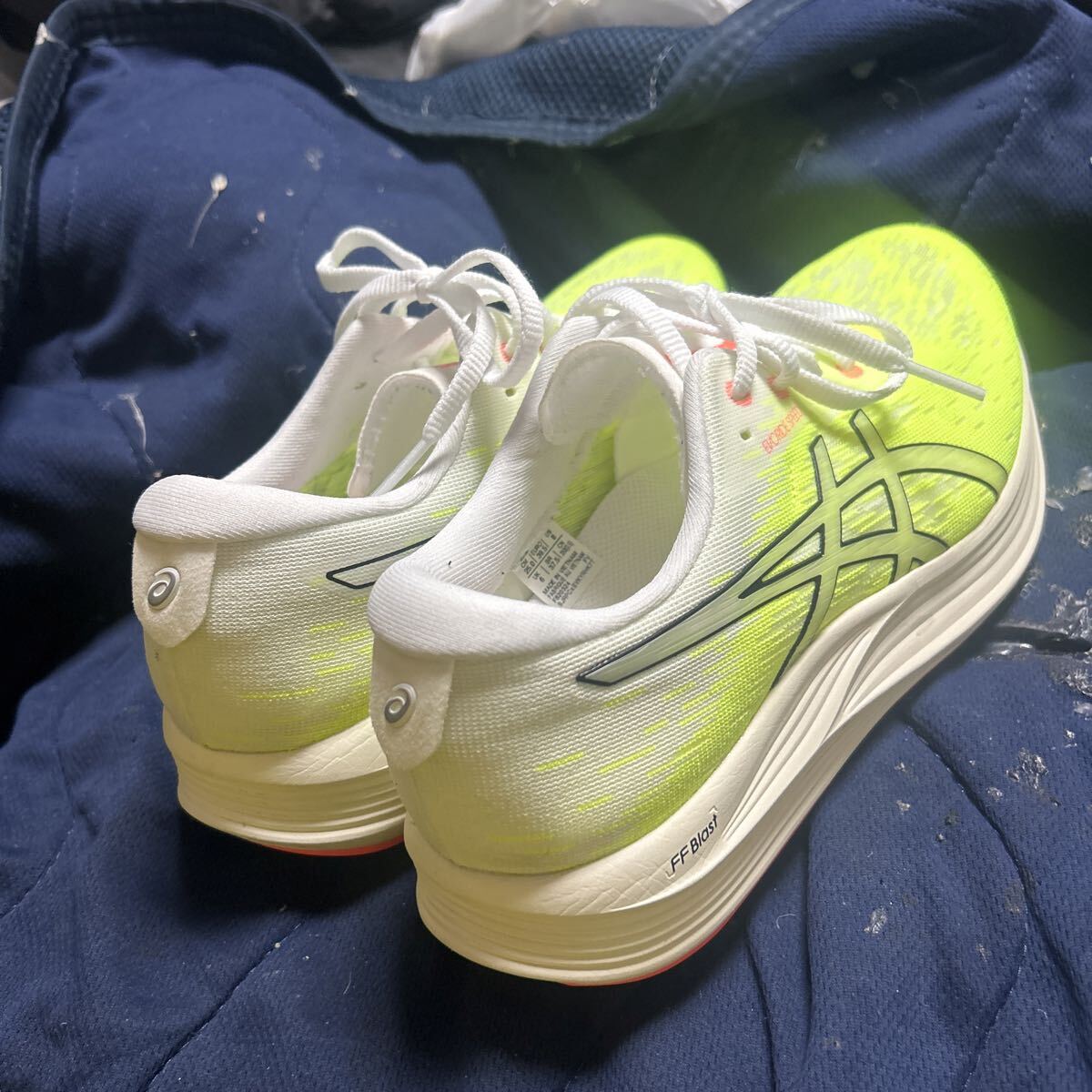 【コメント】適度なクッション性と軽量性を兼ね備え、スピードを出しやすいモデルです。ミッドソール素材のFF BLASTは、優れた反発性を発揮します。また、3D SPACE CONSTRUCTIONを搭載し、着地時の適度なクッション性を追求しました。カーボンプレートを搭載していないアイテムであり、軽量