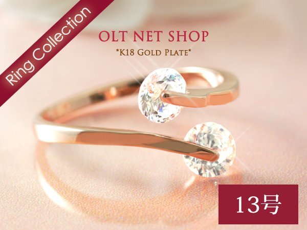 13号 / 新品 指輪 K18GP 2石 シンプル リング レディース 18金 ピンクゴールド ダイヤ CZ おしゃれ プレゼント 20代 30代 40代 50代 女性