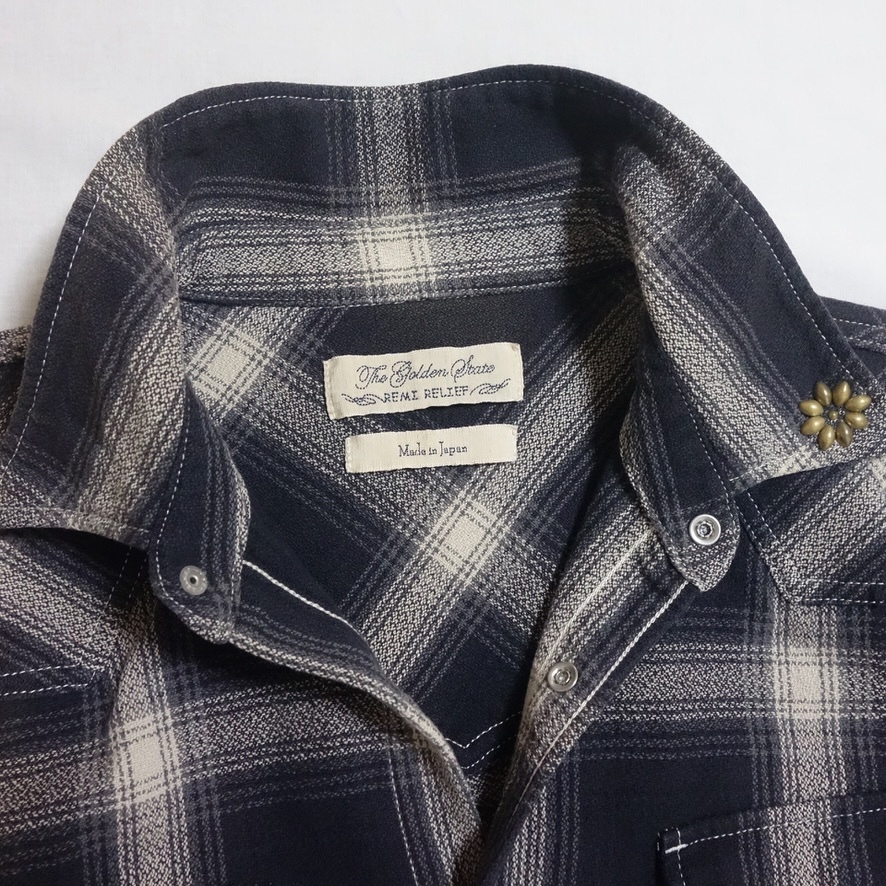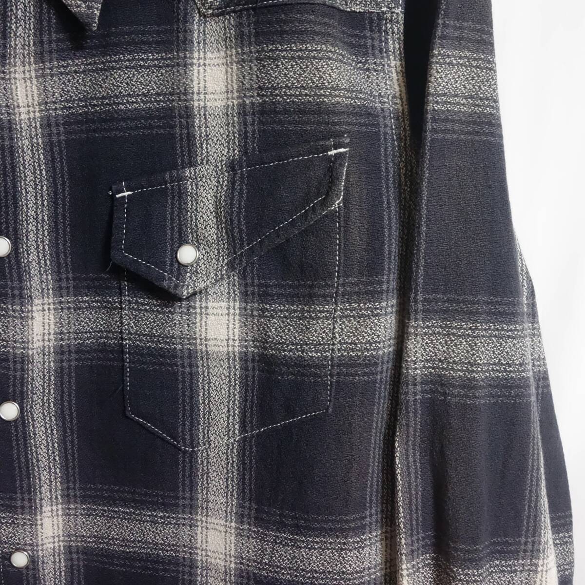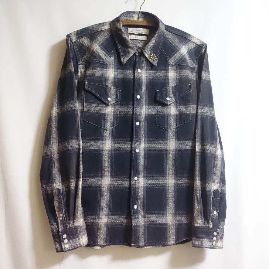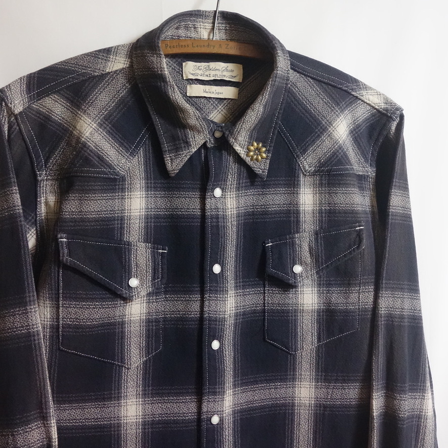 【REMI RELIEF レミレリーフ オンブレチェック ウエスタンシャツ XL】フラワースタッズ USED加工