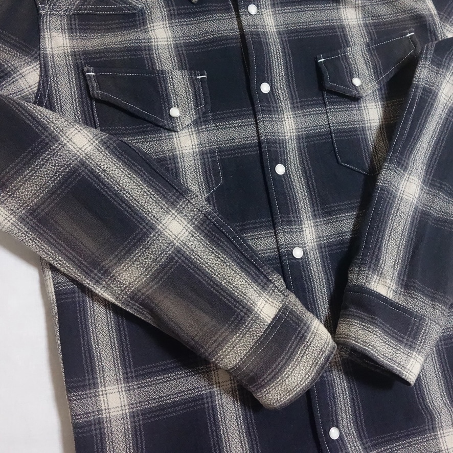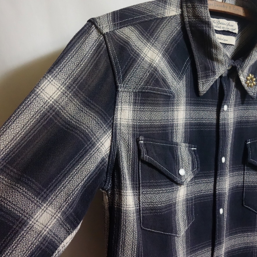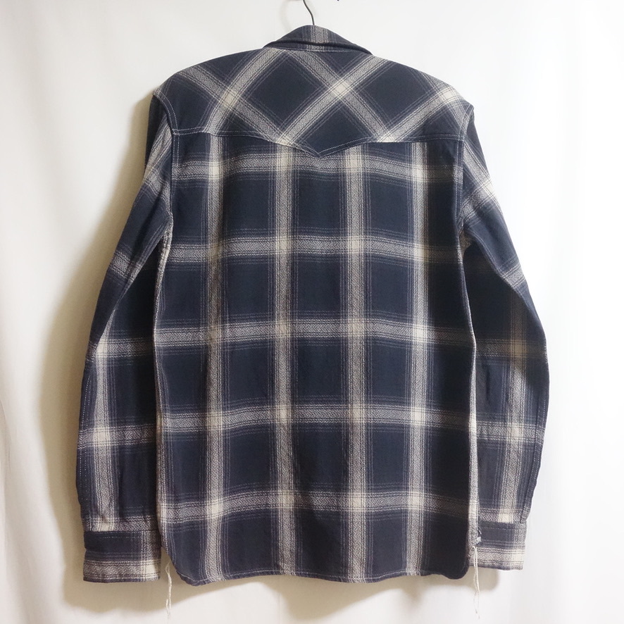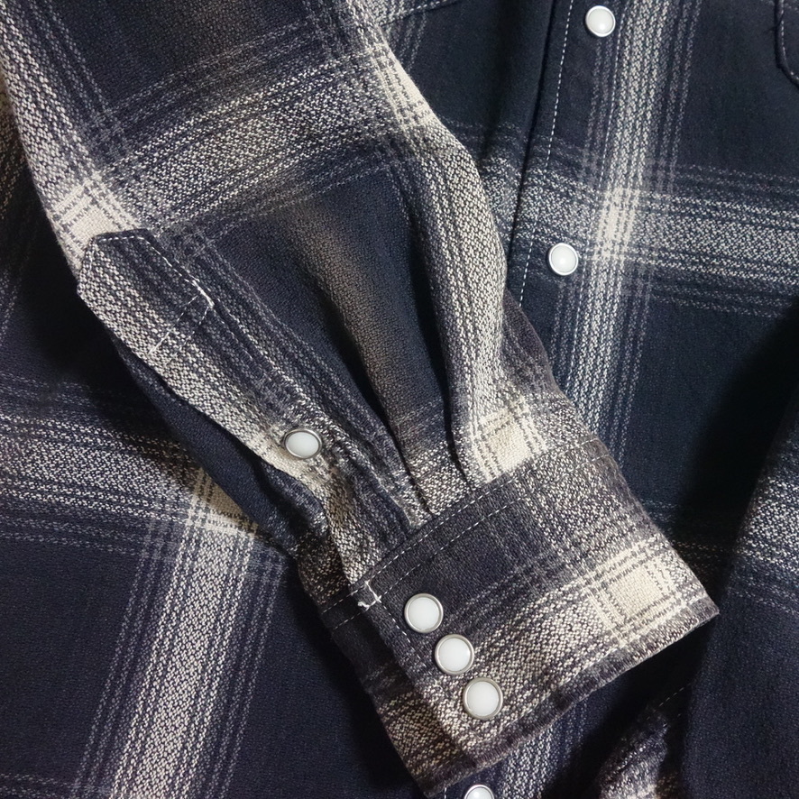 【REMI RELIEF レミレリーフ オンブレチェック ウエスタンシャツ XL】フラワースタッズ USED加工