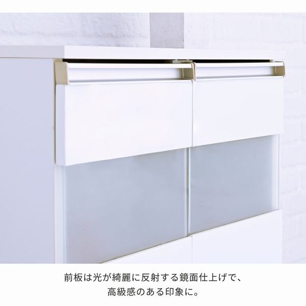 カウンター下のデッドスペースを有効活用できる収納シリーズ“Luce”。 鏡面仕上げで高級感をプラスするシンプルなキャビネット。 収納するものに合わせて棚位置を変えられる可動棚タイプ。 扉を閉めれば収納物が見えないので、見た目もすっきり。 |