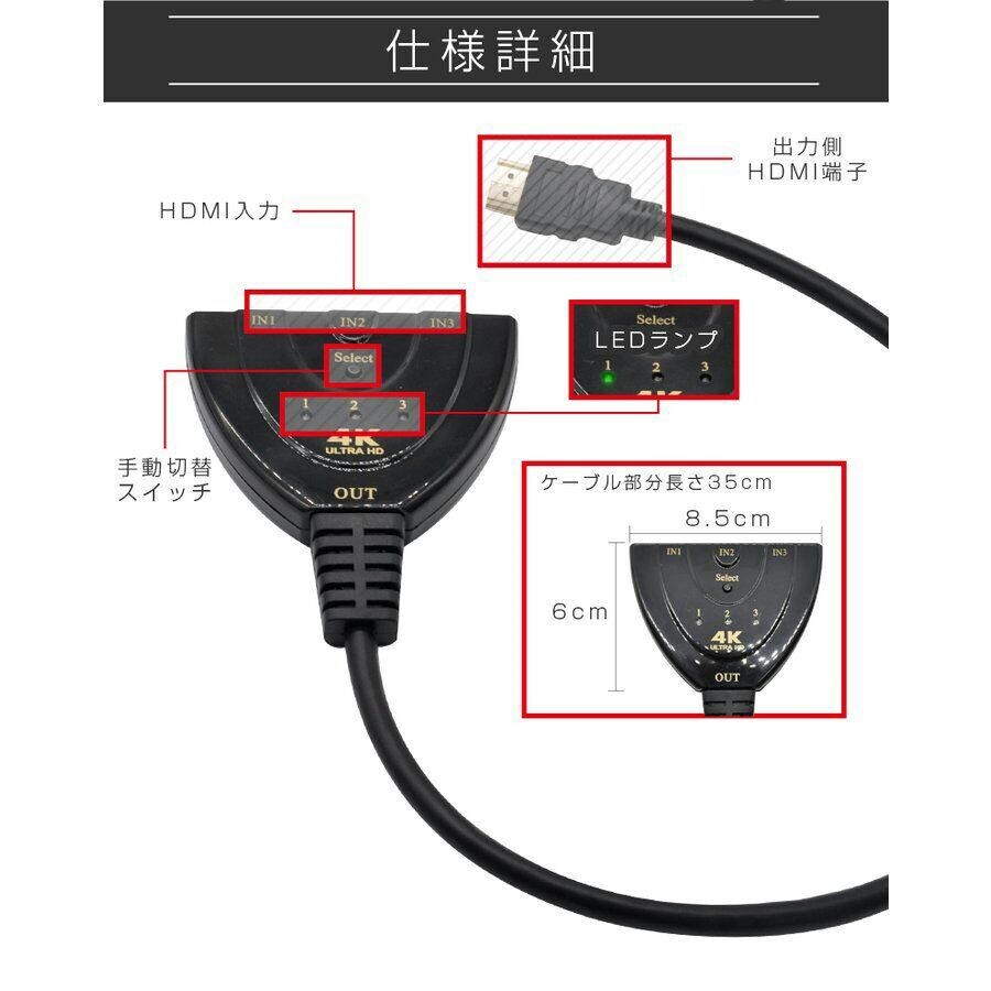 HDMI 分配器 切替器 セレクター ディスプレイ 3入力 1出力 4K 高画質