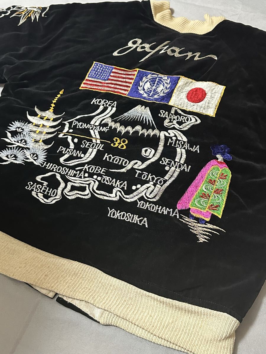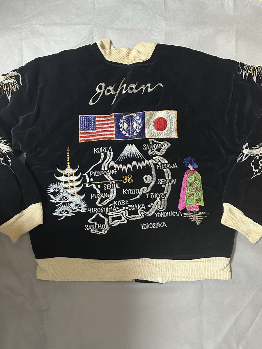 SPECIAL 1950年代 別珍 黒 SOUVENIR JACKET 双龍&舞妓&JAPAN Map