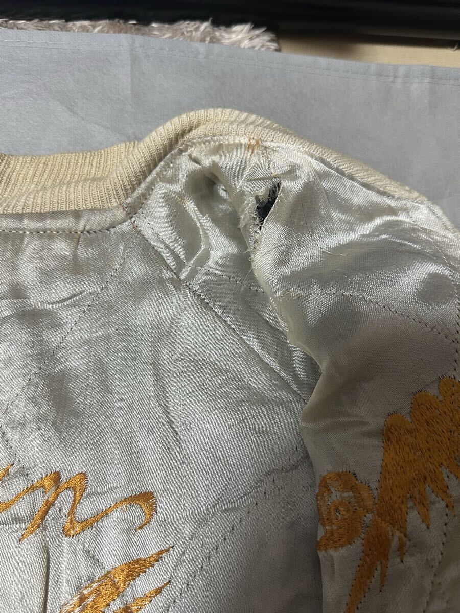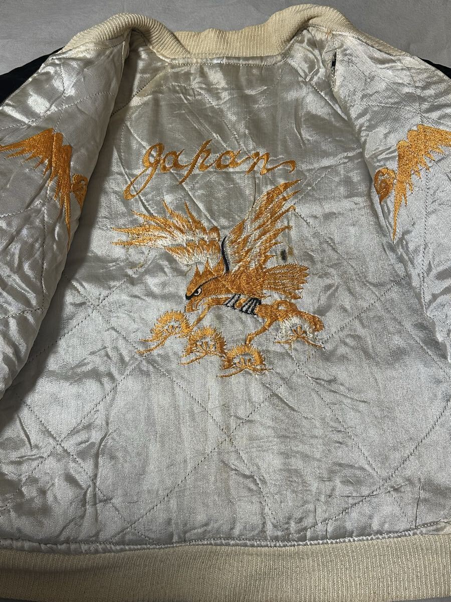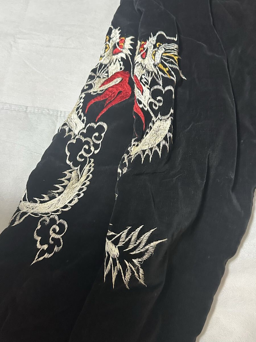 裏の刺繍の色も珍しくて オレンジに近い金糸の鷹で魅力があるのですが やはりこのジャケットの主は完全 表の別珍サイドでしょう。