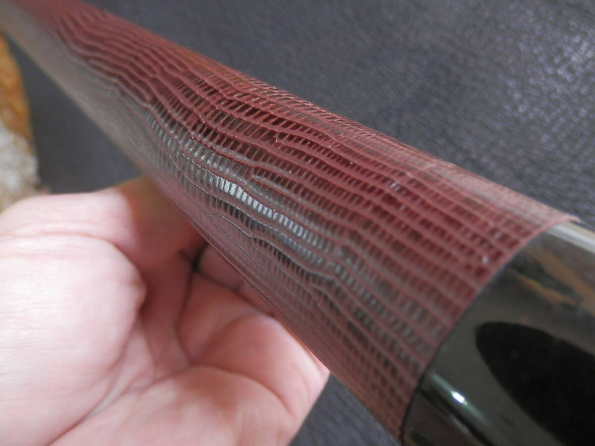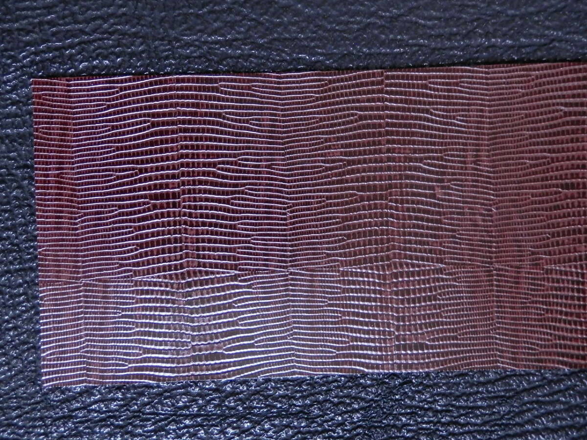 | リザード、トカゲの腹部の型押し模様となります この革はリザードの腹部分の模様がキューを立てて縦に走ります リザード型押しの定番的革ですね カット違いの横模様もございます お好みでどうぞ(*^-^*) 型押しがほどよく手に伝わってきます ほとんどのキューに使用できると思いますが、ご自分のキュー のグリップサイズをご確認ください 革の種類 : 牛革 模様 : リザード、トカゲ 腹部型押し 縦模様 柔らかさ : 普通~やや張りあり 柔1-2-3-4-⑤-6-7-8-9-10硬 握り心地 : スルスル、本革ならでは サイズ : 短径 10.5cm 長径 32.8cm 厚み 約0.6mm前後 ロングサイズ : なし *初心者の方には革巻き工程ガイドをお付けいたします (雑誌のコピーですが)お気軽にお申し付けください 革の種類によっては複数在庫もあります お取り置き、同時梱包も預かります、お気軽にお申し付けください | ||