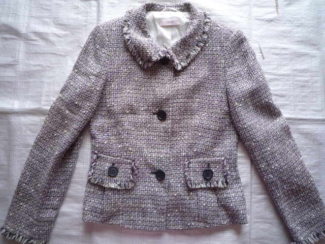 素材は、ウール74%、ビスコース16%、レーヨン7%、シルク2%、ELASTAN1%、 裏地あり、サイズは36、9号くらいの方にお勧めです。