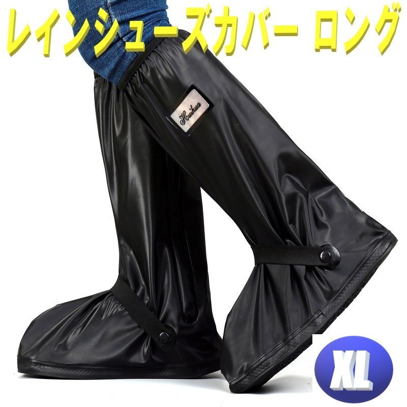 レインシューズ カバー XLサイズ 26.5cm~27.5㎝ 防水 靴カバー レインブーツ 普段使い 反射テープ 付き ロング 丈