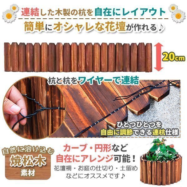 花壇 柵 囲い 仕切り フェンス 木製 連杭花壇柵 W120×H20cm おしゃれ 土留め 連結 ガーデニング アレンジ 庭