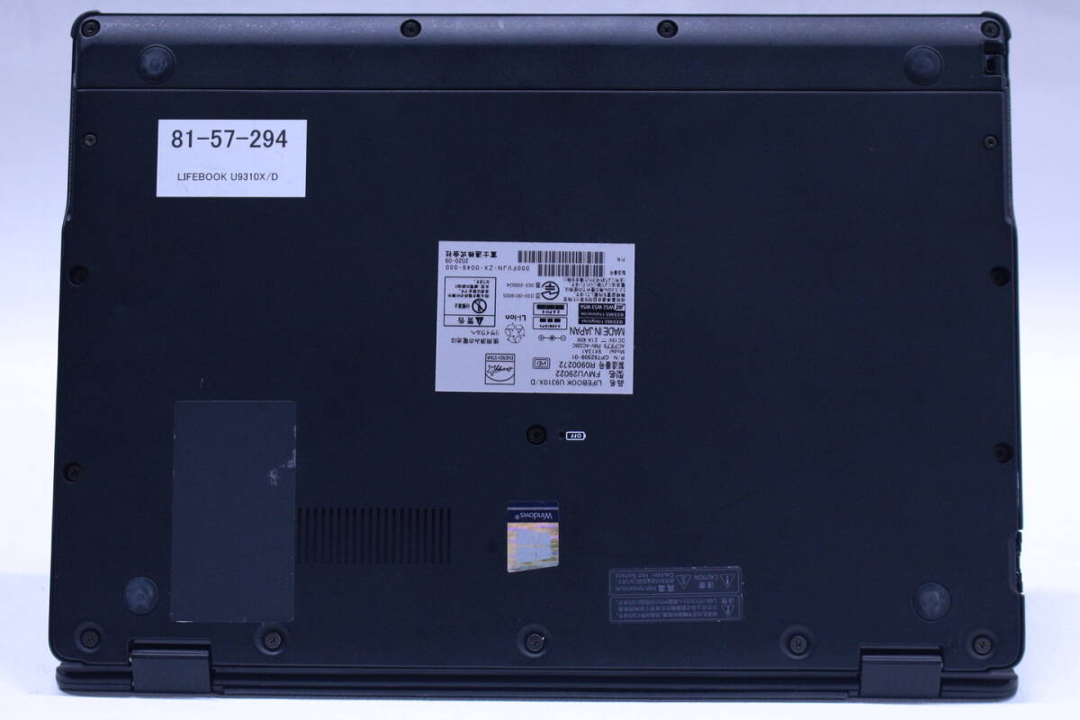 【メーカー】FUJITSU ノートパソコン タブレットPC 【型番/品名】LIFEBOOK U9310X/D LTE FMVU29022 【CPU】Core i5-10310U 1.70GHz / 4コア8スレッド / ターボ・ブースト2.0最大4.40GHz 【メモリ】4GB 【ストレージ】SSD 128GB NVMe 【ディスプレイ】13.3インチ FHD タッチパネル 解像度 1920x1080 ※カテゴリ--13.0~13.9インチ 【グラフィック】Intel(R)内蔵グラフィックス 【光学ドライブ】-- 【Webカメラ】搭載 【製造年月日】2020年09月 【無線LAN】Wi-Fi 6(IEEE802.11ax)対応 【その他装備】Bluetooth、USBTYPE-Cx2、顔認証、W-WAN(LTE)、USBTYPE-Ax2、HDMI、折り畳み式有線LANポート (※その他インターフェースは画像とメーカーページ等でご確認ください。) 【OS】Windows11Pro-64bit 【Officeソフト】アプリ無し(Microsoft Web版Officeご利用可) 【ウイルス対策】Windows Defender、Windowsファイアウォール 【寸法/質量】幅:309mm/奥行き:214.8mm/高さ:16.9mm/重量:877~1018g(仕様・構成により変動する場合あり) 【付属品】ACアダプタ、スタイラスペン(本体収納) 【メーカーページ】(スペック完全一致でない場合あり) https://jp.fujitsu.com/platform/pc/product/lifebook/2005/u9310xd/ https://jp.fujitsu.com/platform/pc/product/lifebook/2005/u9310xd/spec.html 【取扱説明書】(機種・型番完全一致でない場合あり) https://www.fmworld.net/biz/fmv/support/fmvmanual/lifebook2/u9310xd.html