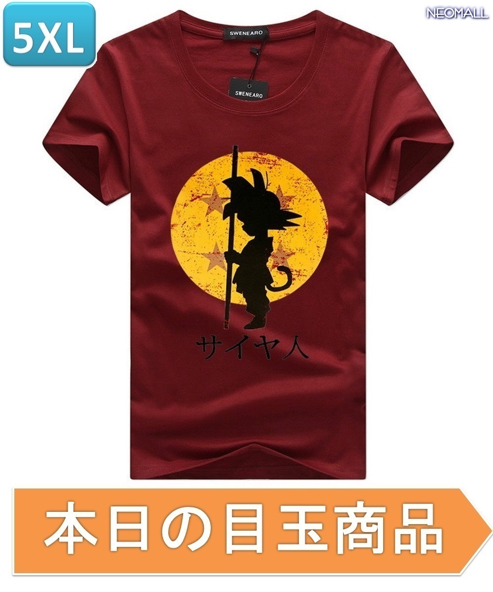 本日のお買得 ☆ 丸首 半袖 Tシャツ【344】 ワインレッド 5XLサイズ トップス シャツ シンプル イラスト シルエット 春夏