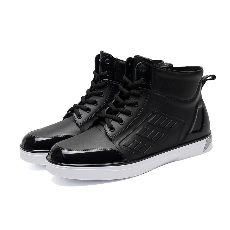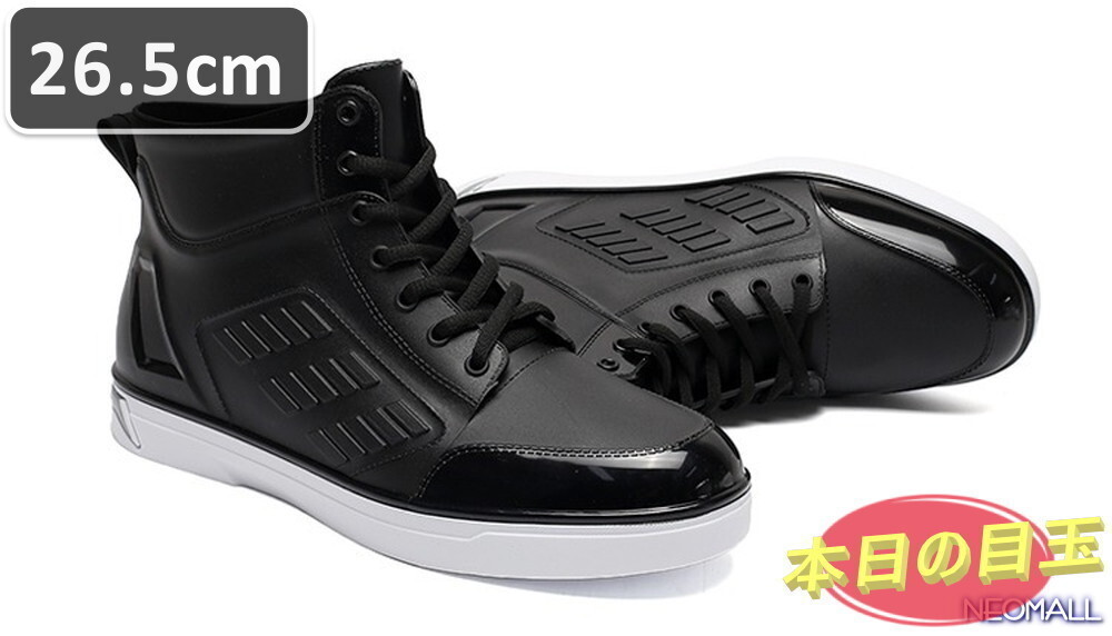 1スタ ☆【487】メンズ レインシューズ ブラック×ホワイト 26.5cm オシャレ ショートブーツ シンプル 梅雨 雨 長靴 雨靴 防水