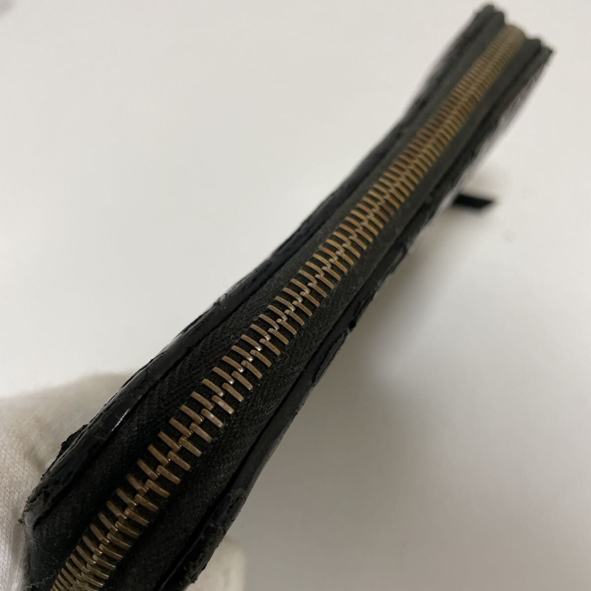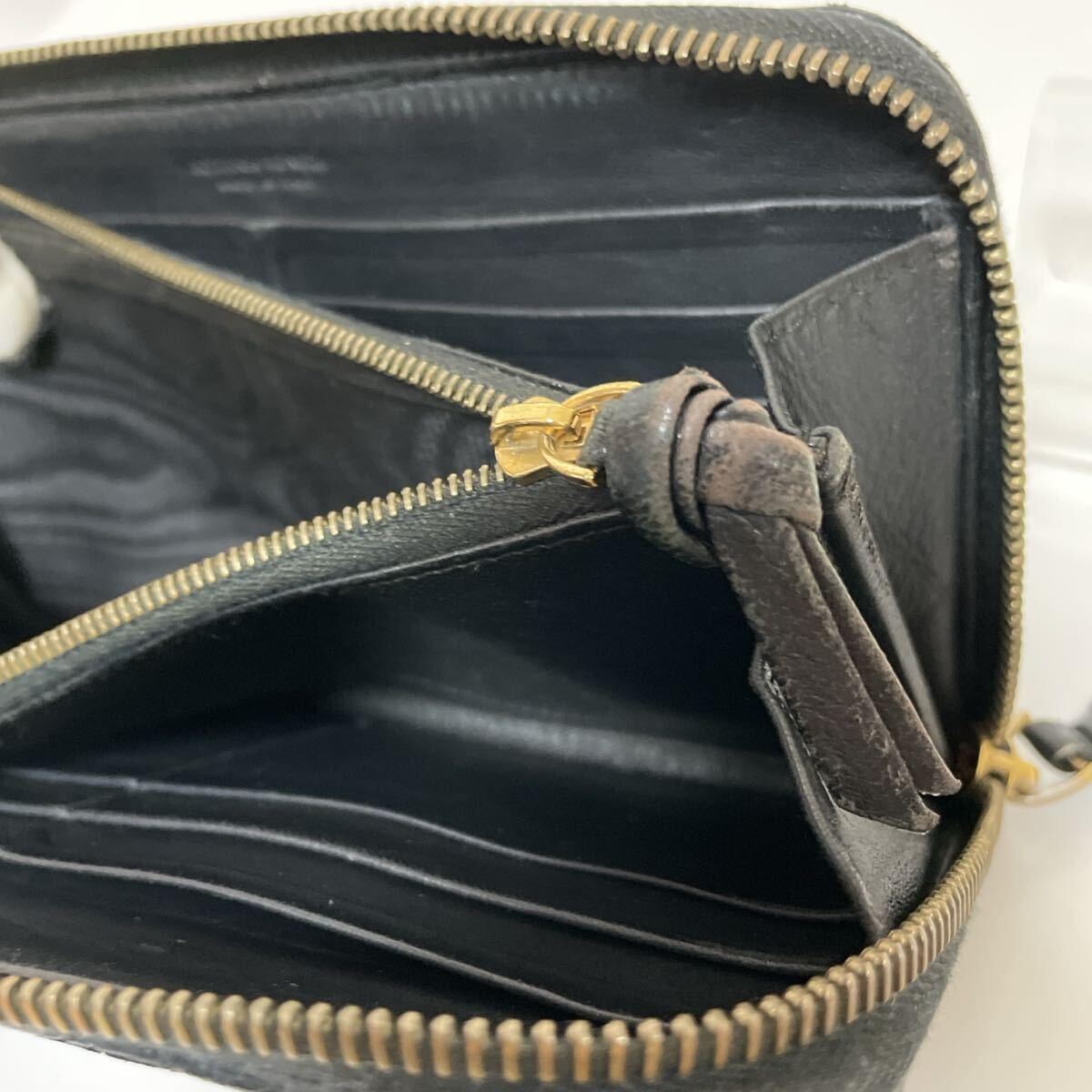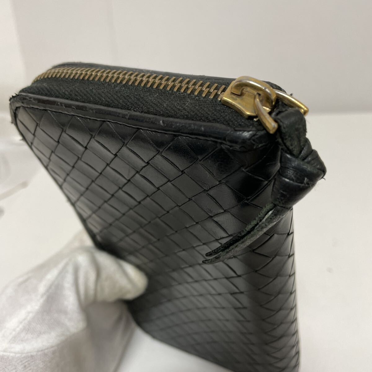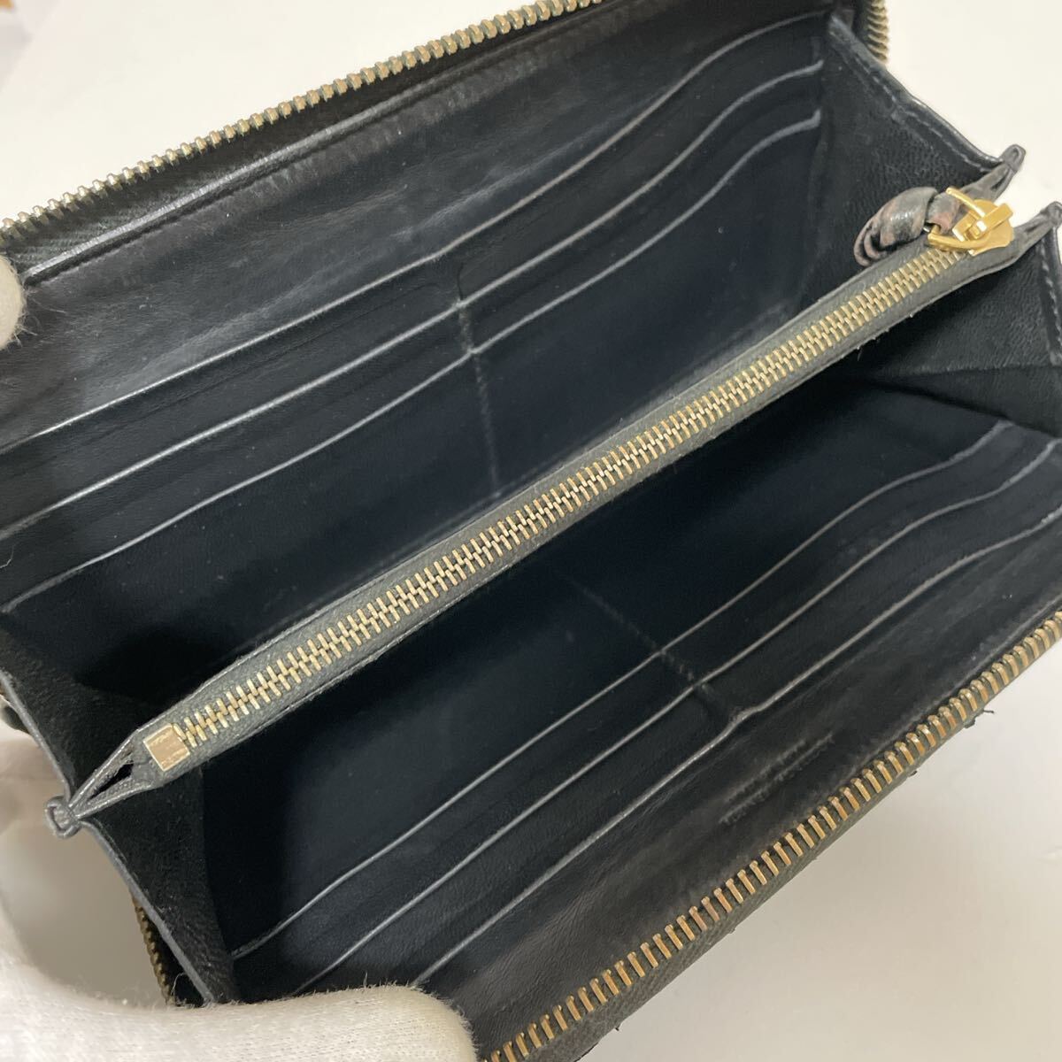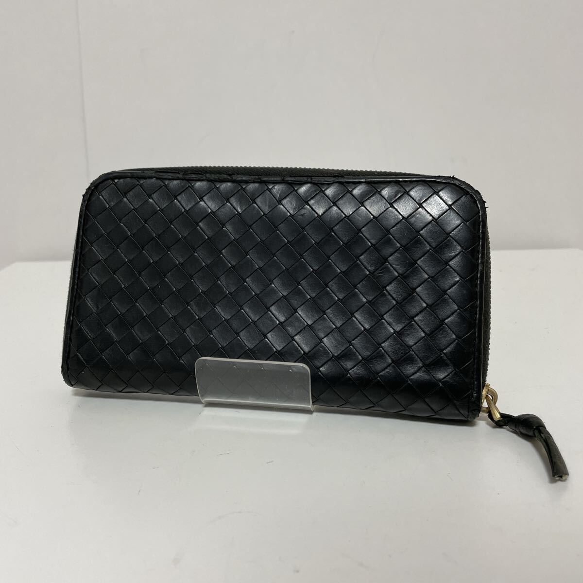 BOTTEGA VENETA ボッテガヴェネタ イントレチャート ラウンドファスナー 長財布 レザー ブラック 中古
