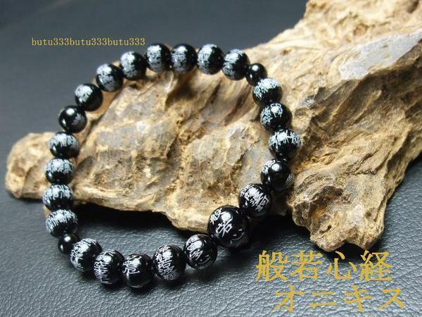 | ブラック・オニキスの玉に一粒づつ丁寧に 「般若心経」の経文を彫っています。 玉に彫られている文字は般若心経です。 文字は右回りで親玉と主玉に順に彫られており、 つなげて読むと般若心経の全文になります。 各玉に彫られている文字は以下の通りです 1.摩訶般若波羅蜜多心経 2.観自在菩薩行深般若波羅蜜 3.多時照見五蘊皆空度一切苦厄 4.舎利子色不異空空不異色色 5.即是空空即是色受想行識亦復 6.如是舎利子是諸法空相不生 7.不滅不垢不浄不増不減是故空 8.中無色無受想行識無眼耳鼻 9.舌身意無色声香味触法無眼界 10.乃至無意識界無無明亦無無 11.明尽乃至無老死亦無老死尽無 12.苦集滅道無智亦無得以無所得 13.故菩提薩捶依般若波羅蜜多 14.故心無?礙無?礙故無有恐怖 15.遠離一切顛倒夢想究竟涅槃三 16.世諸仏依般若波羅蜜多故得 17.阿耨多羅三藐三菩提故知般 18.若波羅蜜多是大神呪是大明呪 19.是無上呪是無等等呪能除一切 20.苦真実不虚故説般若波羅蜜 21.多呪即説呪曰羯諦羯諦波羅羯 22.諦波羅僧羯諦菩提薩婆訶 親玉23. 般若心経 は、お経に含まれます。 経文に沿って、般若心経の飾り彫りをしていません。 この石は、邪念や悪い気を振り払うと信じられ、昔から護符として用いられてきました。感情が乱れやすい人が身につけると、気持ちの昂ぶりを抑制し、理性的になることができます。心身のバランスをよい状態に保つことから、スポーツをする人が身につけることも多いようです。また、意志が弱い人は、この石を原石で持ち歩くと、悪い誘惑から逃れ、自分の主張が言えるようになります。 玉 オニキス 約8mm玉 親玉(大)10mm ・ 二天玉(小)6mm 手首実測 サイズ 17cm 国産ですので品質良です。 又彫の深さをご指摘頂く事も在りますがこれ以上深いと破損の危険が大きく御理解願います。1粒多い23玉仕立 約手首周り6~8ミリアップ希望は落札後500円追加で承ります。 別注品の為在庫限り。 つなぎ 4本オペロンゴム 修理用のモビロンゴム 1㎜仕様を約1mサービスします。 モビロンゴムは使用状況により異なりますが1年ぐらい持ちます。 | ||