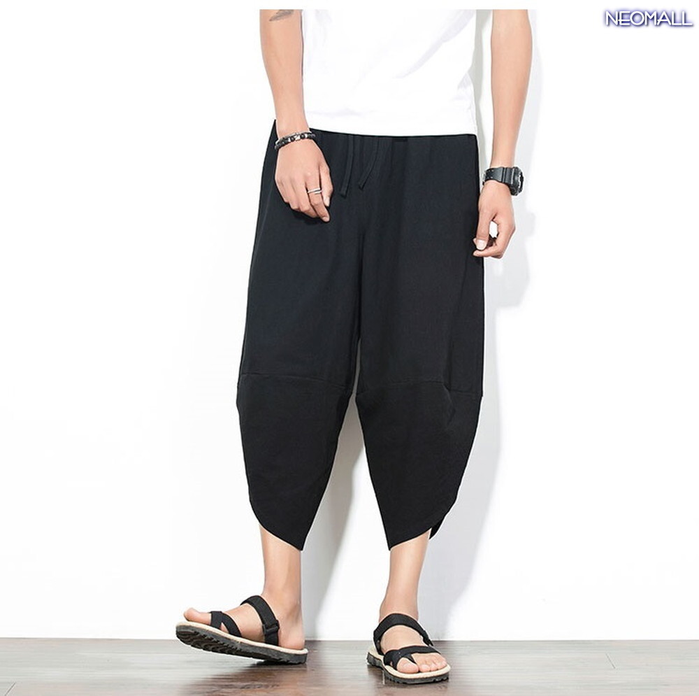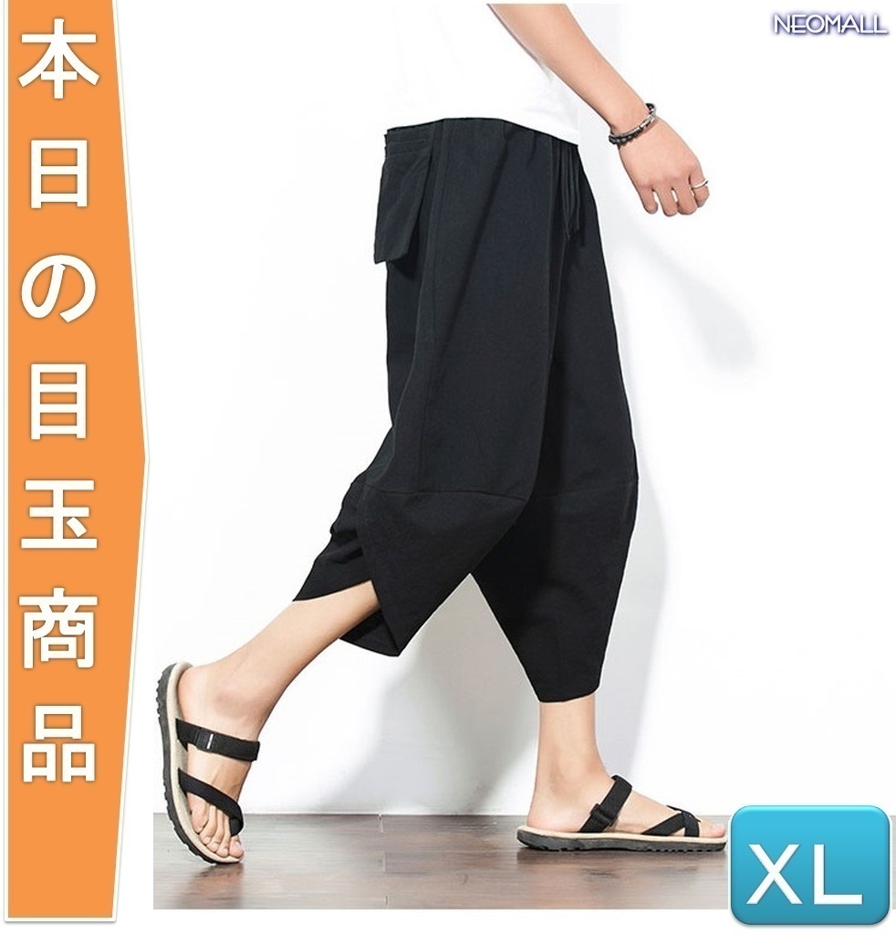 今日の目玉☆メンズ サルエルパンツ ブラック XL カジュアル ヒップホップ 7分丈 スウェット 無地 ポケット付 オールシーズン【339】