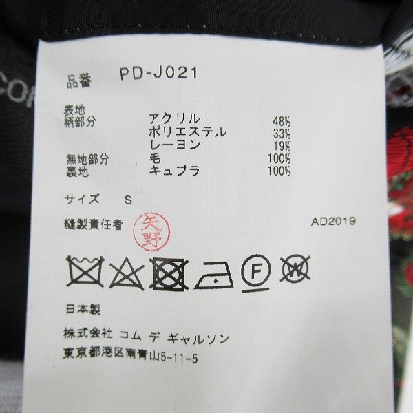 | ☆COMME des GARCONS HOMME PLUS/コムデギャルソンオム 19AW 花刺繍レイヤードモーニングジャケット/コート PD-J021/S /060 | |||||||||||||||||||||||||